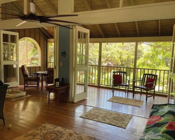 Experience the rare chance to own a piece of paradise in Wainiha Valley’s lush tropical forest. This 1.13-acre estate features a charming 4 bed/2.5 bath vintage home, a tranquil sanctuary near the Wainiha River. With hardwood floors, high ceilings, and large windows, enjoy stunning mountain and forest views, and the serene sounds of nature. An additional octagon structure is perfect for a yoga studio, art space, or office retreat. Nestled in Haena’s vibrant landscape, this secluded property offers unparalleled privacy, rich tropical flora, and ample space for expansion or gardening. Enjoy a mature food forest with various fruit trees and special flowering trees for lei making. Located minutes from Kauai’s North Shore beaches, local markets, and the towns of Hanalei and Princeville, this property is a slice of history and a great opportunity to own in a sought-after Kauai location.