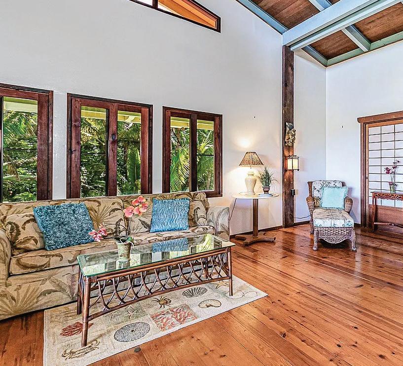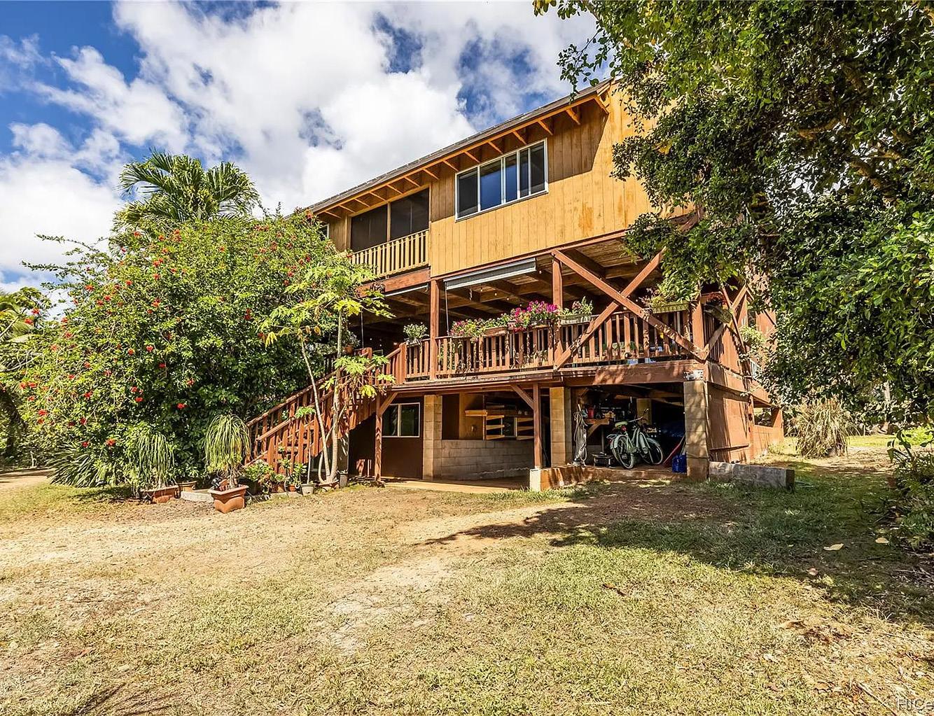 3 BEDROOMS / 1.75 BATHS / 2.75 ACRES / 1,680 SF / OFFERED AT $465,000 Phenomenal OCEAN views and views of lush tropical beauty are visible from the 890 square-foot covered lanai of this handcrafted large custom home made from cedar and redwood. All of the windows and doors are handcrafted. Hardwood floors. Open concept, living room, kitchen and dining room, with soaring cathedral, open beam ceilings! Two bedrooms and a den are downstairs with a large bathroom with soaking tub and walk in shower and dual his and her sinks. All rooms have doors to the lovely lanai. A solid Koa staircase leads to third loft bedroom. Detached garage with 3/4 bath could be additional living area and all situated on 2.75 lush Acres!