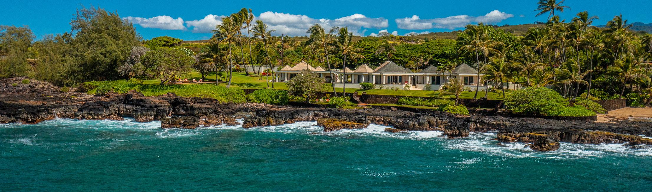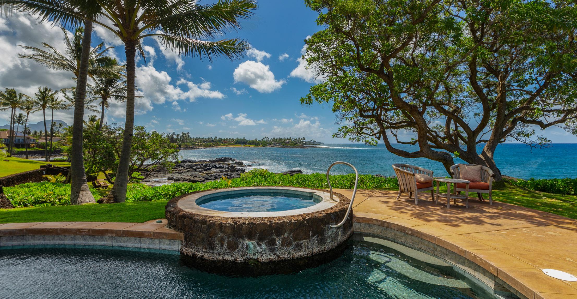 With 350+ lineal feet of oceanfront with a sandy beach and tidepools, this beautiful custom home on over an acre of land is a Hawaiian sanctuary. Secluded and classically designed by Paul Wuesthoff, AIA so that each room enjoys sweeping ocean views, sunsets, west views of Spouting Horn and east views of Kukui’ula Bay. Along the north it is bordered by the Allerton National Tropical Botanical Garden and is located just east of beautiful Lawai Bay and stunning Lae O Kaiwa beach. A gourmet kitchen and expansive lanai make for easy entertaining and living, inside or out. The home features an air-conditioned primary bedroom and two additional en-suite guest bedrooms for privacy. The inviting swimming pool overlooks the ocean and is surrounded by mature heliotrope trees. A successful licensed vacation rental, Hale O Ka Nalu Poi is one of the most desirable estates in the entire State of Hawaii.