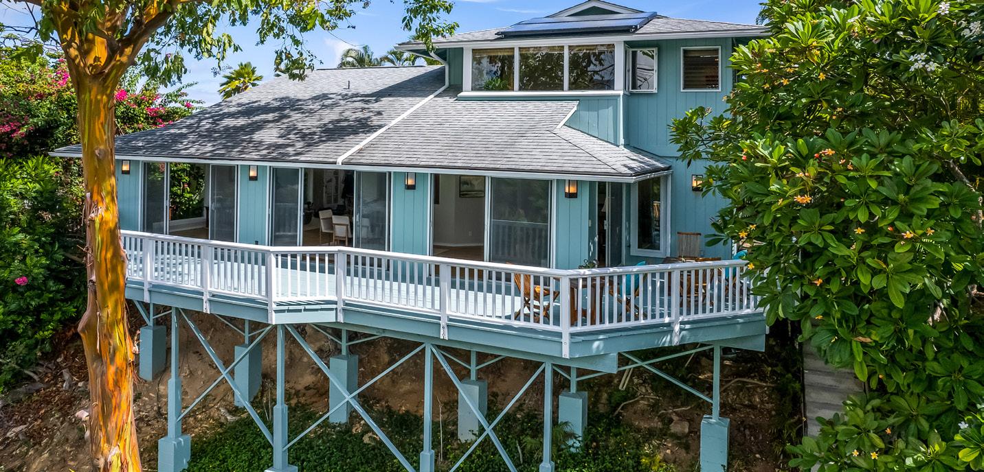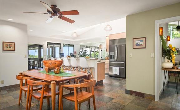 This fully furnished, move-in ready, custom-built property, features two separate structures. Perched above the street on an expansive one-acre lot, you’ll find peace & privacy. In addition to 180-degree coastline views, there is a solar heated saltwater pool, vibrant green lawn with an abundance of tropical plantings, and a fully owned photovoltaic system for energy savings.