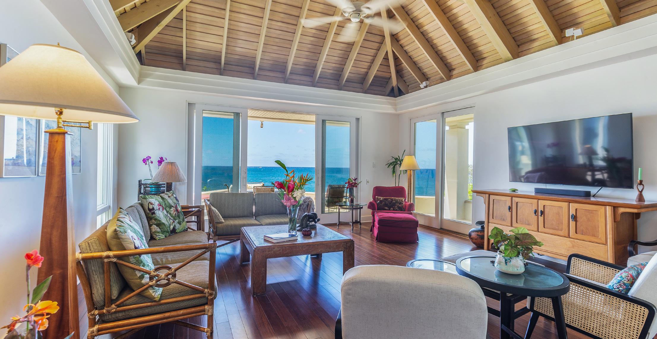 Maliula 2208 is an absolute gem at the exclusive oceanfront 5-star Timbers Kaua‘i Ocean Club and Residences. Beautifully furnished and thoughtfully designed, this turn-key residence offers sophisticated resort-style living with a spacious floorplan of 2,426 sf total living area that includes three lanais. The living room and the two master suites open to their own private lanais to relax in comfort while enjoying gorgeous sunrises. This luxury residence provides privacy and a variety of captivating ocean, golf, lagoon and mountain views.
