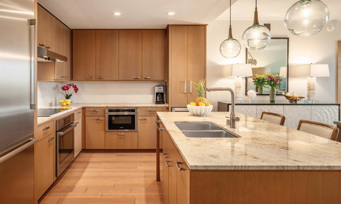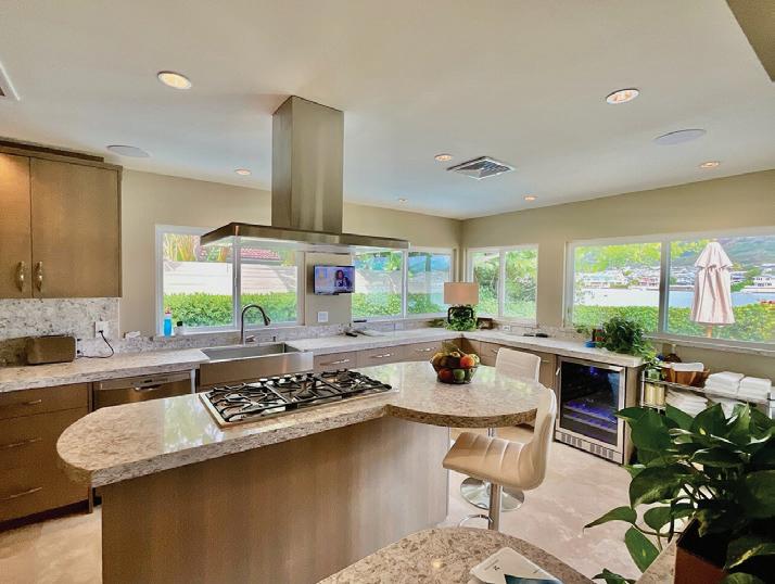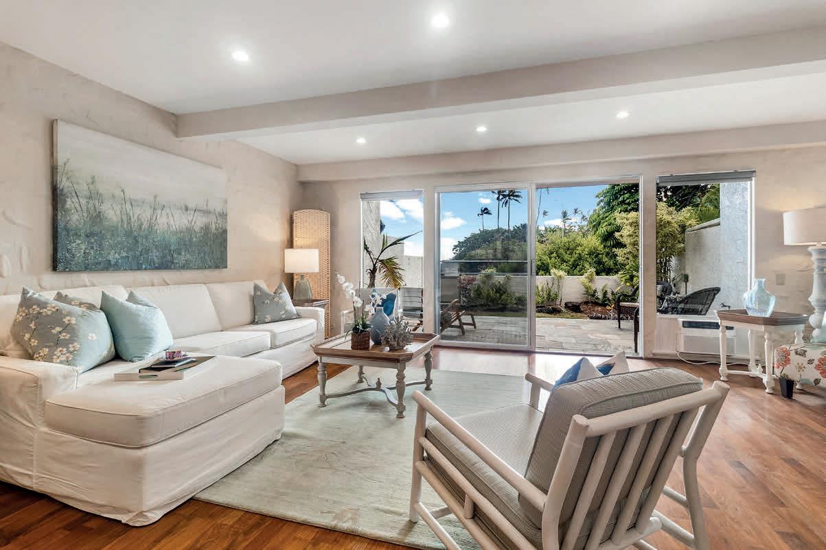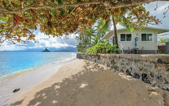 On Lanikai Beach, opposite Oahu’s famed Mokulua Islands, the 2021 BIA Grand Design Award-Winning Mokulua Cottages are where fine craftsmanship & innovative design converge, with the re-imagination of vintage beachfront bungalows into contemporary cottages. The 3 unique & separate living spaces are thoughtfully arranged on property, offering privacy, yet community, within the compound. With the “Makai House”, you are greeted by a portrait view of turquoise waters & iconic twin islands. Through state-of-the-art sliding glass doors, you’ll also enjoy a grassy lounge area, offering sights & sounds of the Pacific, cooling trade winds, & the perfect indoor/outdoor lifestyle. Just a short stroll across the lush landscape is the “Garden Cottage”, a wellappointed studio, perfect for guests. On the hill side of the property sits the “Mauka House”, a light-filled 3BR/2BA, second full home. All 3 turn-key structures are luxuriously curated with high-quality materials, timelessly elegant furniture, innovative styling & unique lighting. Indigenous designs, integrated with natural stone & timber, introduced with hints of glamour, complement the breathtaking panoramic views inside & out.