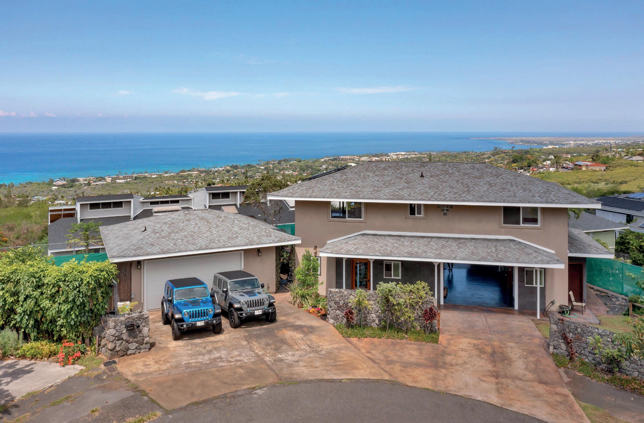 Enjoy exceptional ocean and sunset views overlooking the Kona coastline from this luxury custombuilt Kailua-Kona, Hawaii home. Living areas on two levels offer options for investors, extended families or hosting guests.