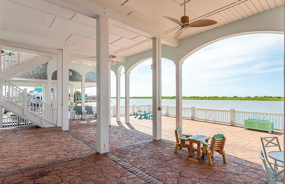 One-of-a-kind two-story custom-built home with prime location on the Intracoastal Waterway. Waterfront lot with docking for multiple boats, and boat lifts. This outdoor paradise includes multiple decks. Trex decking surrounding the second floor and a 1500 sq ft deck over the boat lifts. Enjoy the beautiful sunsets over Galveston Bay from your private decks. This home beautifully renovated in 2022 by the current owners and will be sold furnished. Residential elevator moves from the first to the second floor. The spacious kitchen all chefs will enjoy with custom cabinetry, quartz countertops, wood floors, two side by side refrigerators and 48” gas freestanding range. Bar with wine refrigerator nice for entertaining. Kitchen opens to dining and living areas. Primary ensuite bedroom and two guest bedrooms feature custom blinds and draperies. Whole house dehumidifier. Upstairs offers a second primary bed, bath & utility room. Fun bunk room with play area for the younger ones.