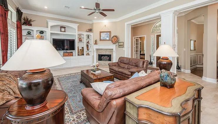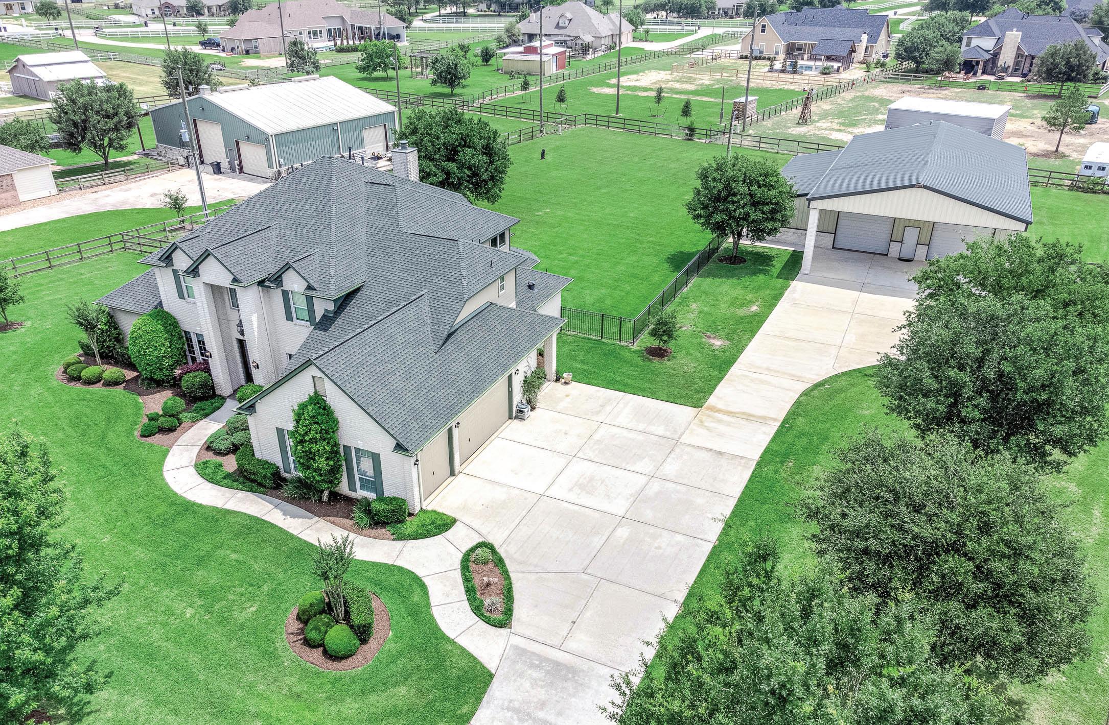 4 Beds | 4.5 Baths | 4,519 Sq Ft | Offered at $1,300,000. Gorgeous home in horse-friendly community - Remington Trails. Sierra Classic custom home sits on 1.4 acre with 4600+ sq ft, 4 bedrooms, 4.5 baths & 3 car garage. Soaring 10’ ceilings downstairs with spectacular views of backyard. 5 piece crown molding, huge family room and tray ceilings throughout. Gourmet kitchen has Dacor luxury appliances - 6 burner range top, 2 ovens & convection microwave, built-in Kitchen Aid fridge. The primary bedroom has 2-sided fireplace, sitting area with a wall of windows. Upstairs are 3 large bedrooms, 2 full baths & a gameroom. PLUS A BONUS SHOP or RV GARAGE built in 2015 with 2700 SF, AC & Heat, epoxy floors, hydraulic 2 post car lift, office area & full bath. Well maintained with 2 new A/Cs & furnaces, new 30 year roof, low tax rates, NO MUD, NO flooding, A-rated Katy schools.