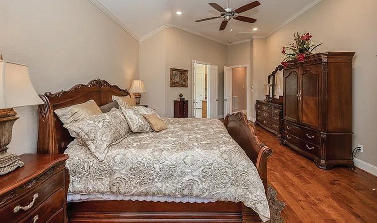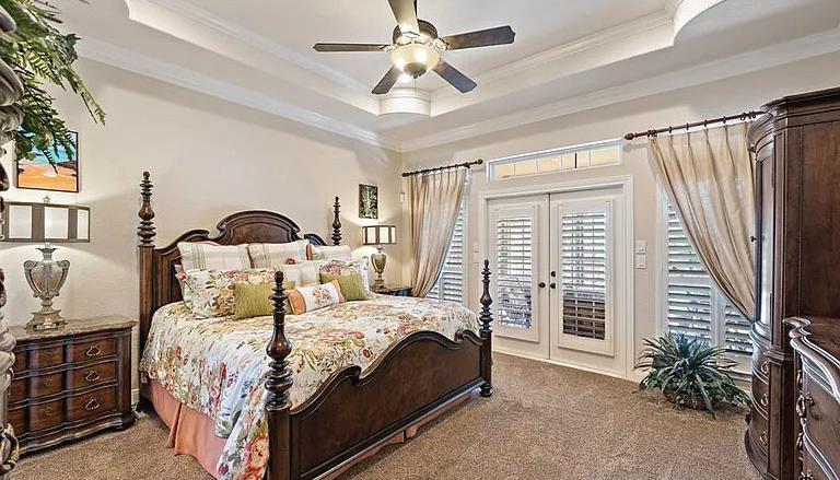 This beautiful, one owner custom Crown Colony home on the golf course was meticulously designed to maximize living and entertaining space with stunning views of the golf course and lake from every rear window of the home. The primary bedroom space includes a spa like bathroom with two large walk in closets. There are 3 additional oversized bedrooms and multiple areas to entertain indoors and out, in addition to a stunning dining room with unobstructed golf course views. The kitchen features custom cabinetry, granite countertops, double ovens, Subzero refrigerator/freezer, walk-in pantry & wet bar. Extensive millwork and moldings are found throughout the house. Lots of indoor storage. Outside you will find extensive landscaping, 2 covered patio areas, along with an outdoor kitchen. The property has a 3 car garage, complete with a porte cochere, a fully enclosed outdoor storage room and a generator. You will find luxury in every detail of this thoughtfully designed home.