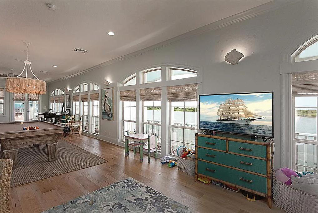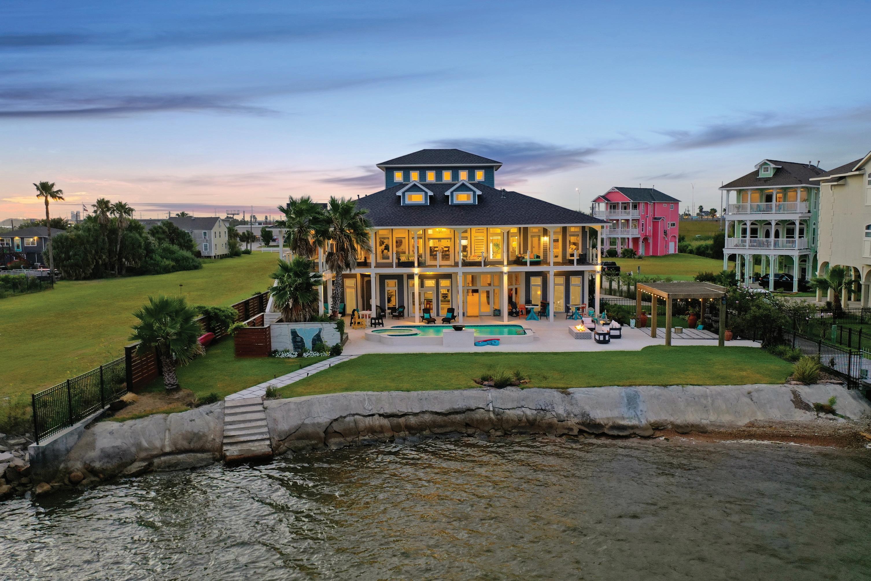 Welcome to Old Galveston Villas, where luxury living blends seamlessly with the allure of the coastal lifestyle. 1026 Lillian, an architectural masterpiece, sits along 120 feet of stunning waterfront. Renovated in 2018, this home features six or more spacious bedrooms, each with its en-suite bathroom.