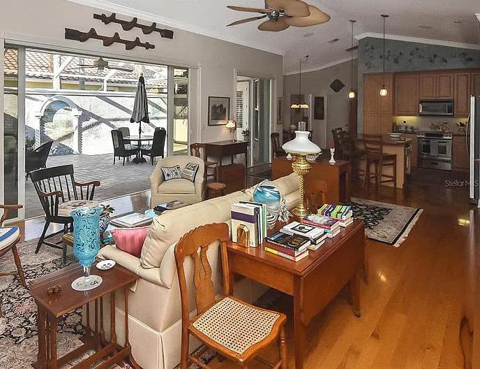 Venice Island home with ideal location in a spectacular neighborhood. This custom courtyard home has been lovingly maintained and updated by the original owner and it shows! Upon entering the home, you are greeted by the open concept kitchen and living room the perfect spot to host gatherings. The kitchen is well oriented as the heart of this home with lots of natural light coming in through the courtyard. The generously sized master suite adorned with arched windows, plantation shutters, bath with dual sinks, walk-in shower, and 2 large walk-in closets. In true split plan fashion, a guest bedroom and full bath are on the other side of the home. For the occasional out of town visitors you have the separate “casita” with an en-suite bathroom. Pocket doors used extensively to create a more open feel, and with plantation shutters and crown molding throughout this is a home to love! Home also has Armor screen hurricane protection for all windows. Centrally located and extremely walkable, this is the perfect location for shopping, dining and entertainment! Venice Theatre, Venice Community Center, Venice Art Center and even the Symphony are only a few minutes walk, you are truly in the heart of Venice.