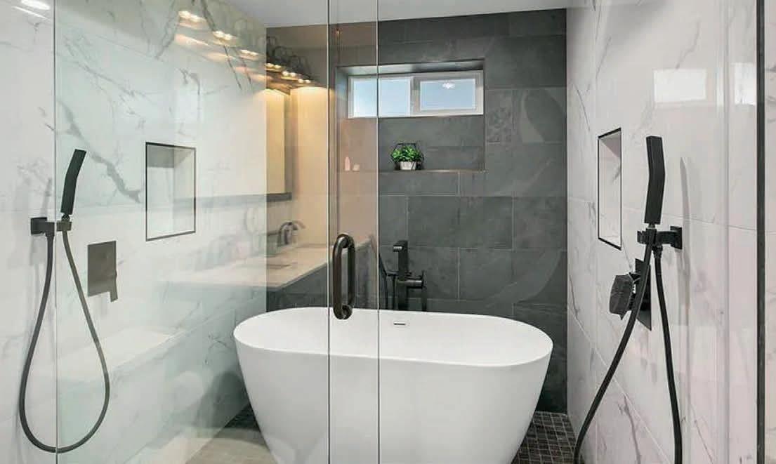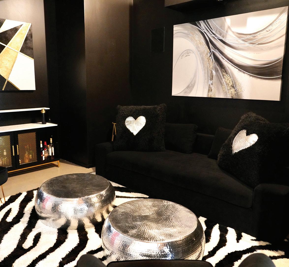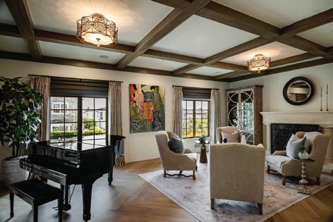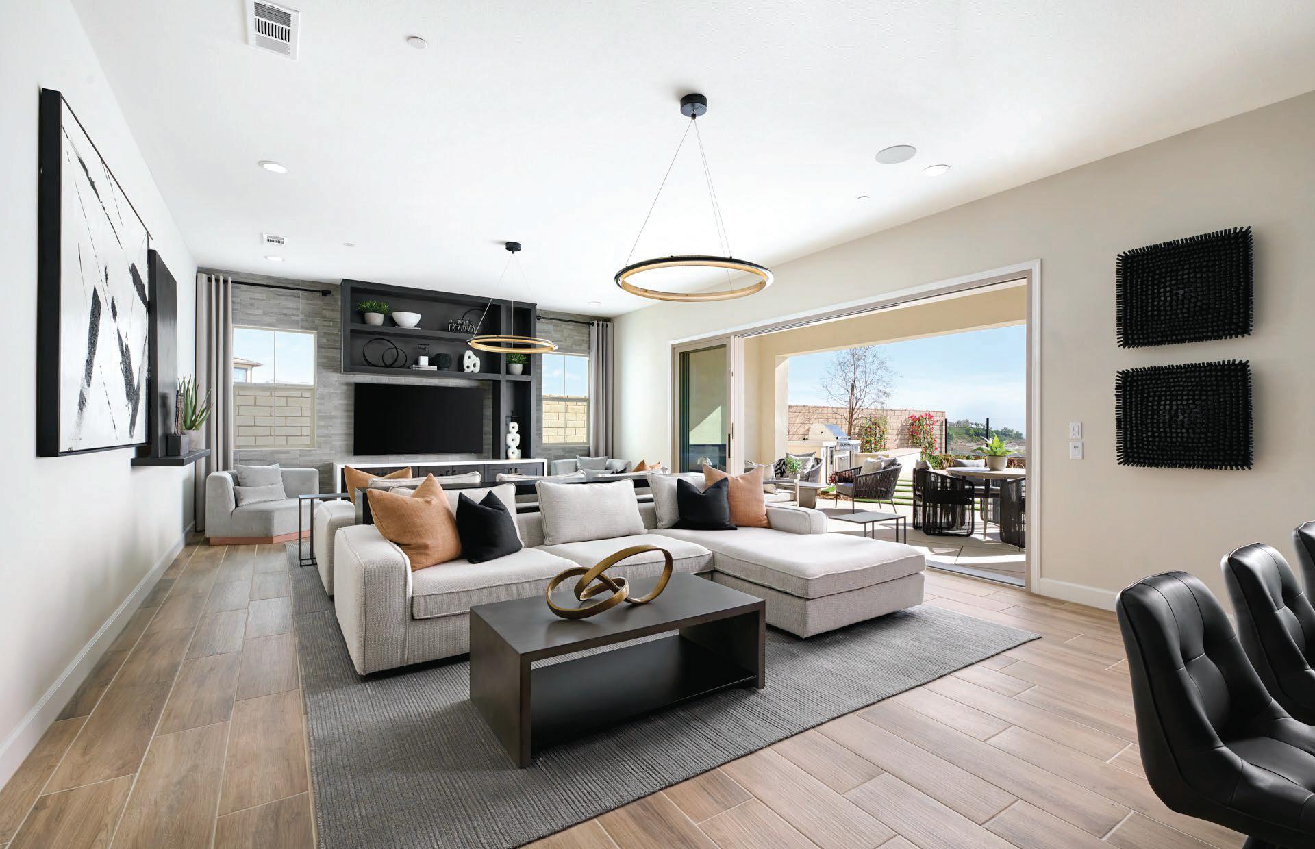 bar, and a glass-enclosed wine room. The media room showcases a matchbook porcelain feature wall that easily converts from an expansive entertaining space into an intimate home theater.