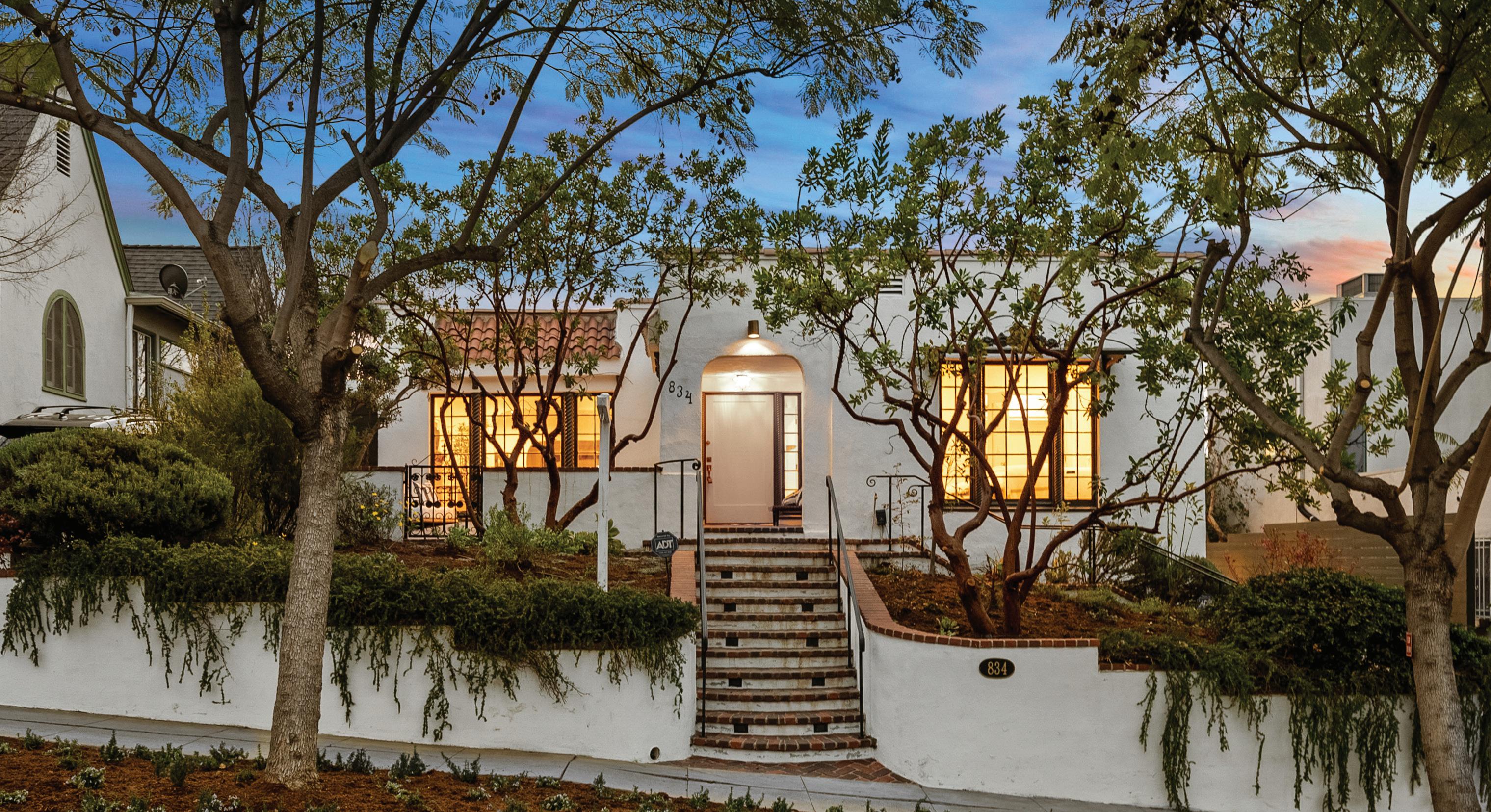 Welcome home to this newly restored Spanish gem with breathtaking views of the downtown skyline and mountains. This unique home has been gutted down to the studs and upgraded from top to bottom with new systems throughout while still keeping the original character and charm from the 1920's. Upon entering, you will be greeted by an abundance of natural light from the meticulously restored wood windows. Custom hand made kitchen cabinets with a Carrara marble counter peninsula seating, making this space ideal for entertaining. Other upgrades include original refinished hardwood floors, newly insulated walls (crawlspace + attic included) , new drywall throughout, new torch roof, all new water +waste lines, full electrical re wire with 200AMP panel ready for solar or EV charging set up. Other features include arched entryways and ceilings in living areas with a batchelder tile like fireplace. Hallway bathroom off kitchen was recently added with permits and features a soaking tub with views of downtown, dual vanities sit perfectly in between the originals homes built ins that were re-purposed. The master retreat features custom hand made dual-sink bathroom vanity sets with custom design tile work in shower. Elevated living at its finest and just minutes away from Silverlake's unique dining and shopping and perched on one of the most well known streets in town. Easy access to the the Micheltorena steps which take you down to Sunset blvd.