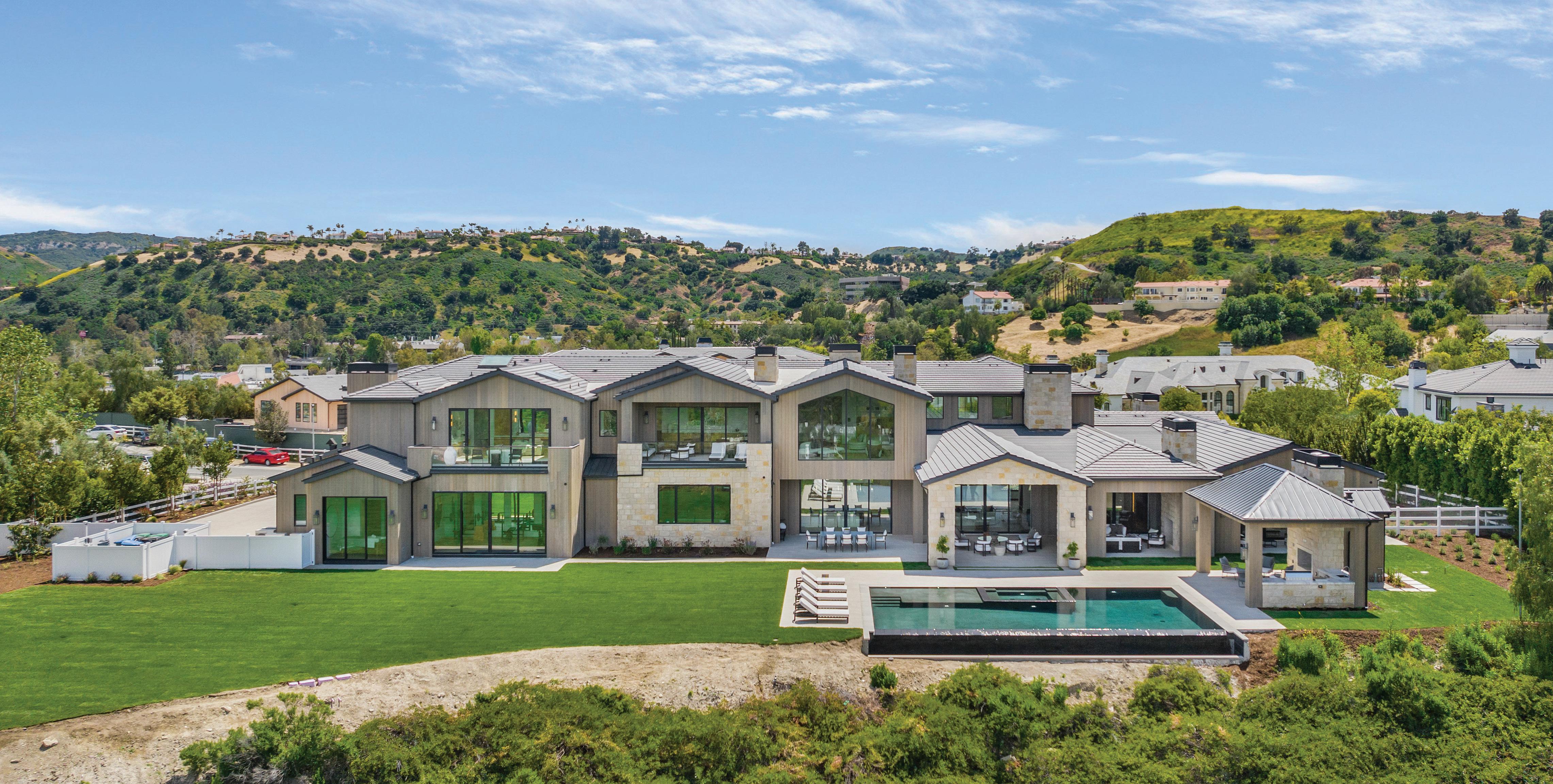 Welcome to “The Ridge at Hidden Hills” – a newly constructed, one-of-a-kind estate sited on a picturesque 1.77+ acre view lot on one of the most sought-after streets in Hidden Hills. A custom 12’ glass pivot door greets you at the entrance, leading you into a world of luxury, elegance, and quality. Bathed in natural light and spanning approx. 21,670 square feet, this home exemplifies the essence of the relaxed, indoor/outdoor California lifestyle. The home features unparalleled amenities such as a two-lane bowling alley, gym, steam shower and sauna, theatre room, zero-edge pool and spa, plus garages for 12 cars on one of the finest streets in all of Hidden Hills.