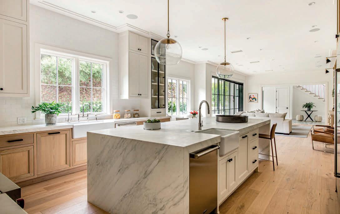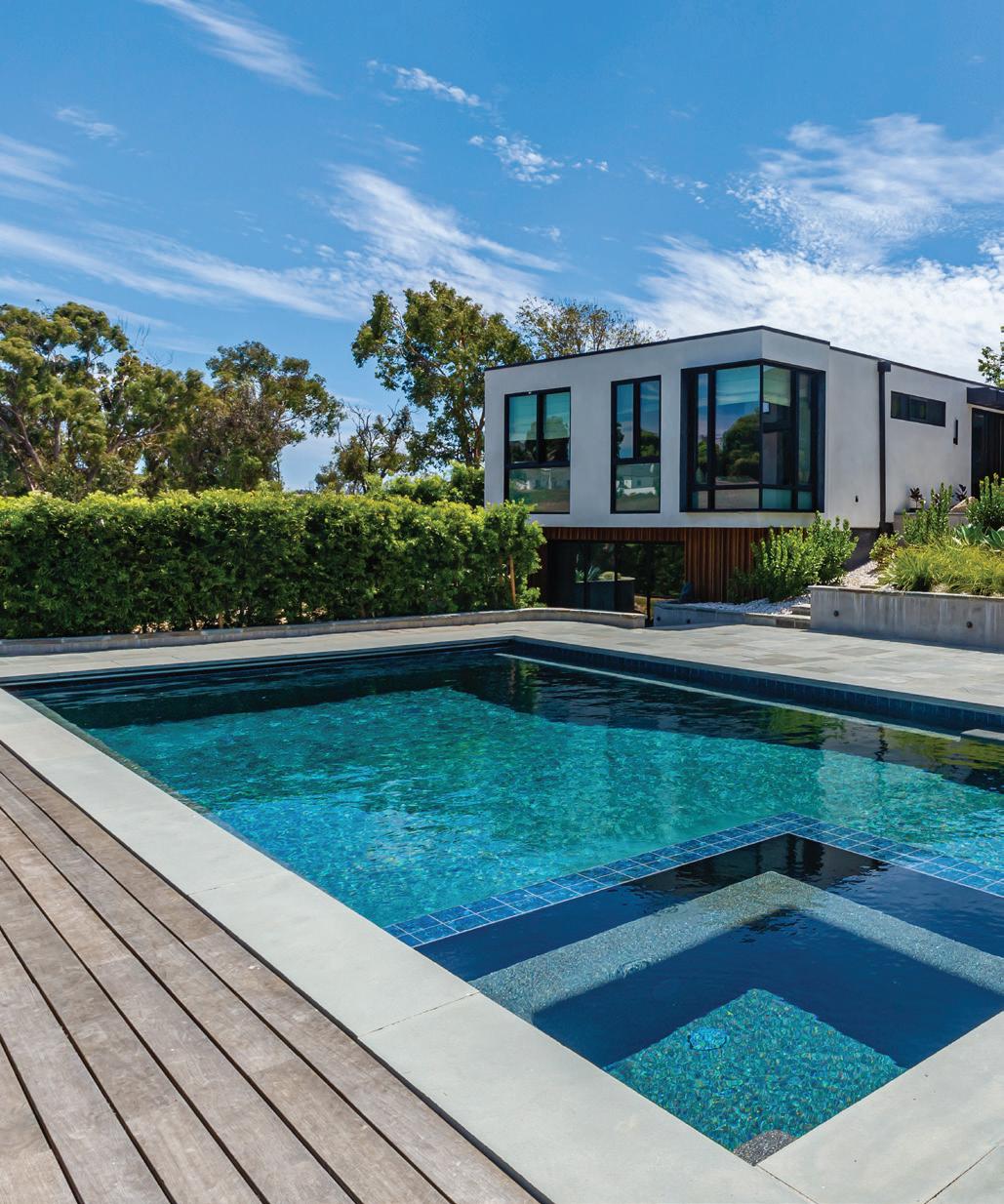 Fountainhead Homes is renowned for its custom built homes of exceptional craftsmanship, commissioned for discerning clientele. This is your chance to own one of their works. The “Hutton Home” offers timeless luxury in 90210. You will feel the superior quality from the moment you step onto the grounds of this stately, architecturally classic home. Clean, crisp, lines draw you to the inviting veranda elegantly lit by chandeliers. In the foyer, you are greeted by an enduring marble checkerboard flooring motif, a view of the grand backyard, and a “magazine worthy” formal living room to your right. Living room features large picture windows facing front and walls clad in full height paneling. The main living area functionally combines a large kitchen with center island seating, a casual dining area, and a large family room with custom built-in entertainment cabinetry, which extends seamlessly into the backyard through floor-toceiling sliding glass doors, creating a natural extension of the living area.