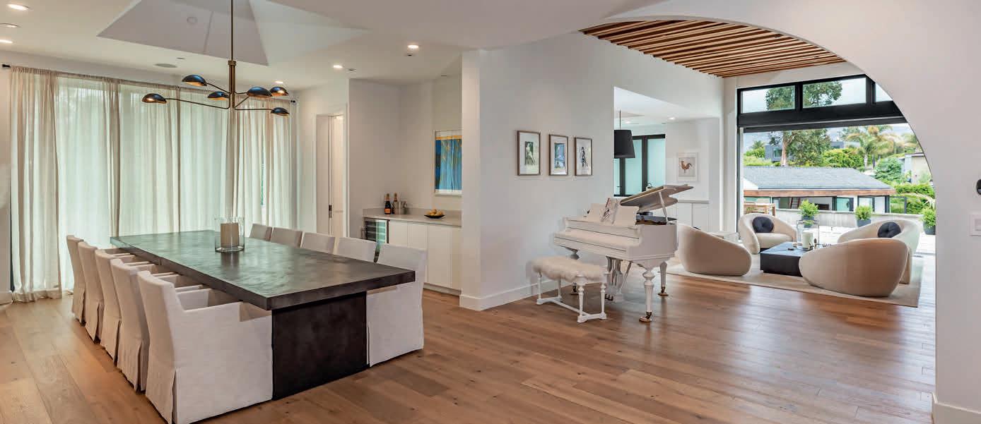 Entertain with ease in the chef’s kitchen, equipped with top-of-theline Wolf appliances and custom Italian cabinetry. The adjacent dining area overlooks the lush landscaped grounds, ideal for al fresco dining under the stars.