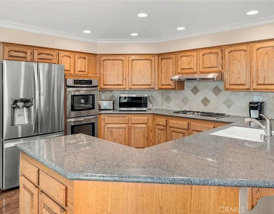 This luxurious remodeled home features a grand foyer with Capiz shell chandeliers, a high-end kitchen, and a spacious great room. It offers a formal dining room, a serene primary suite, and three additional bedrooms. The private backyard includes a pool, spa, BBQ center, and low-maintenance landscaping. Located in Simi Valley, it blends elegance with practicality.