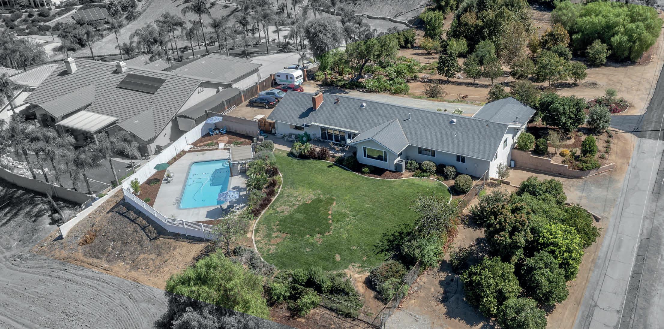 5 beds | 6 baths | 7,133 sqft | $3,500,000 Located on the Santa Rosa Plateau, set off in the picturesque setting of La Cresta, secluded at the end of a cul-de-sac, hides this magical hillside resort! The main home features five bedrooms, six bathrooms, four fireplaces and views as far as the eye can see. Surrounded by more than 50 palm trees you’ve got your own oasis privately tucked away on a hilltop all your own. The gentle driveway leads you through the 14+ acre property until you approach your private gated entry. This home includes two ensuites each with their own kitchen giving enough space for three families. Inside and outside staircases lead you throughout the 7100+ square-foot home. Terra-cotta tile at the entrance and throughout the kitchen give this home a warm and cozy feeling. Vaulted ceilings finished with rough sawn cedar wood beams at the entry ceiling and throughout the kitchen and family room. Their is space for everyone and privacy on every floor. 6 A/C units through out the home each with their separate controls. A kitchen to please any chef with a huge granite center island, double ovens, oversized subzero refrigerator, and storage space that makes you smile. The well produces over 120 gallons per minute. 5000 gallon propane tanks will last you throughout the year. The pool is heated by solar to keep your energy costs down. The Santa Rosa West association covers 1290 acres and each residence is a minimum of 10 acres. Plenty of fascinating wild life can be seen through out the meadows off in the distance. This home is located just at Santa Rosa Wests’ edge and no one can build to block your million dollar view. This association also has approximately 9 miles of horse trails for the equestrian enthusiast. Escape to this hidden Oasis in Santa Rosa West of La Cresta which is considered the hidden gem of Southern California.