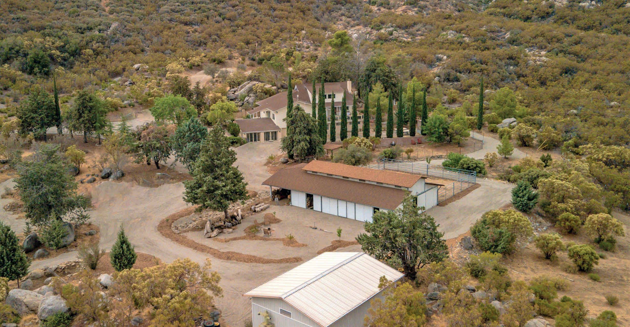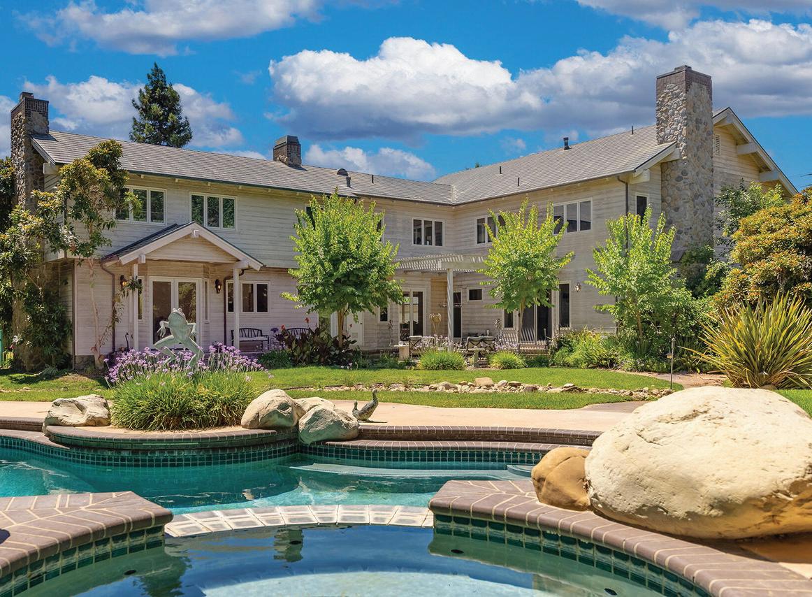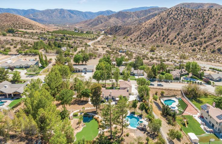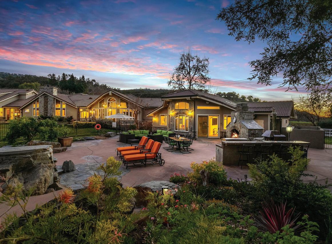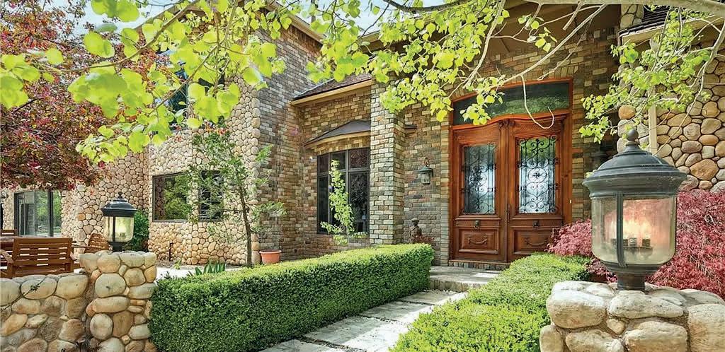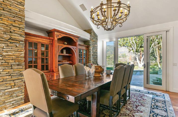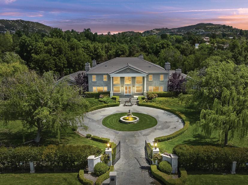 Royal Oaks Ranch – 5 gated, private acres close to downtown with wrap-around porch, 5 bedrooms, media room, wine cellar with tasting room, library, gym/massage room, 4 fireplaces, pool and spa, sauna, family orchard, olive tree orchard with approximately 30 trees, Bocce court, putting green, volleyball court, chessboard, gazebos, pasture, private well, 150-year copper roof, copper gutters, RV parking with hookups, sixcar garage and workshop, and more. RoyalOaksRanchOjai.com