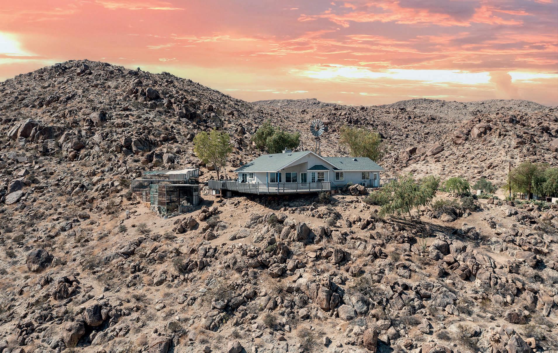 butts up to BLM and The JTNP. Go for a Climb on the rocks and mountain in your own backyard, or do a little exploring. Relax on the large deck or in the included hot tub and soak in the beautiful views, catch our famous desert sunsets, or just watch the wildlife. OWN YOUR VERY OWN MINI MOUNTAIN VALLEY, with plenty of parking, around the house, and in the valley, areas for horses, and livestock, and storage sheds that are already included. The open kitchen and great room area room comes with built in appliances, glass open cabinets, and a large pantry/storage area. Cool and heat your home with a variety of options, including mini splits, central heating and A/C , swamp cooler, or a wood burning stove. The large main bathroom has a separate shower and claw bathtub. All appliances, included the washer/dryer are included in the sale. The garage is also heated and cooled with mini splits and swamp. Well is on electric, with a working windmill and a 10, 000 gallon storage tank. Propane is plumbed to the house. 50 amp Trailer connection and dump next to home, AND DID I MENTION THE VIEWS!!!