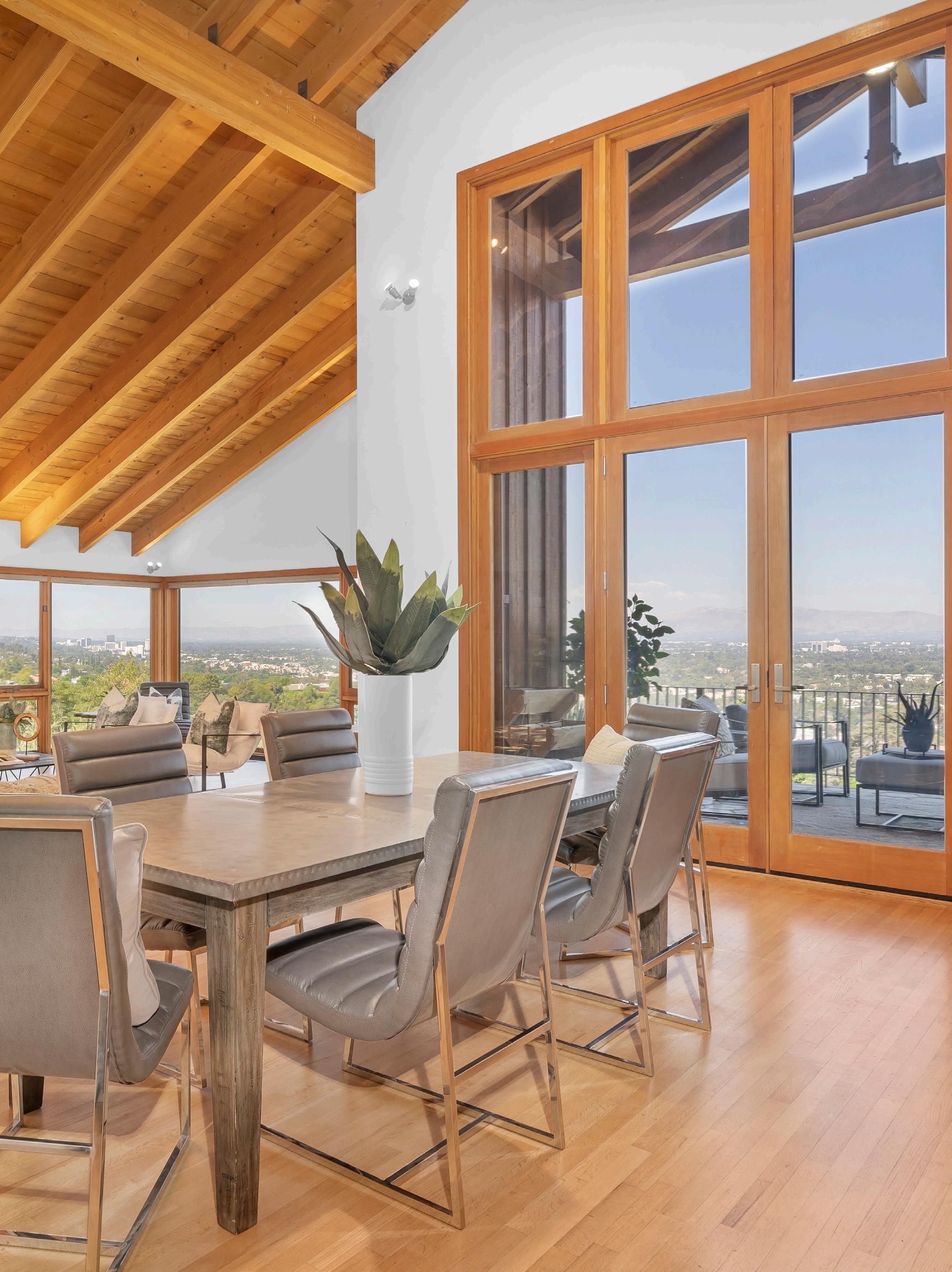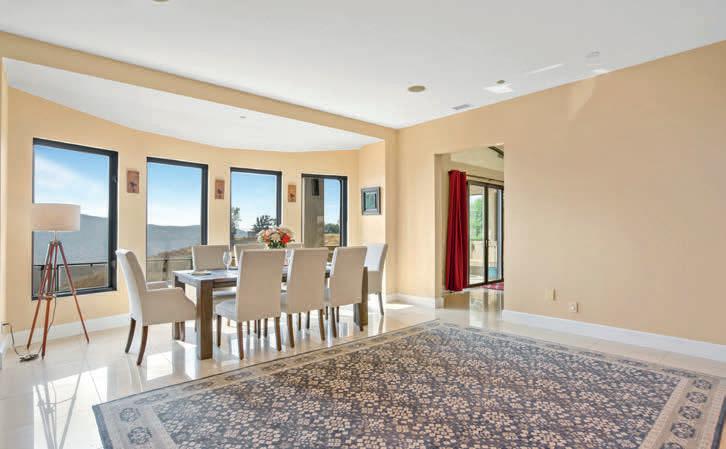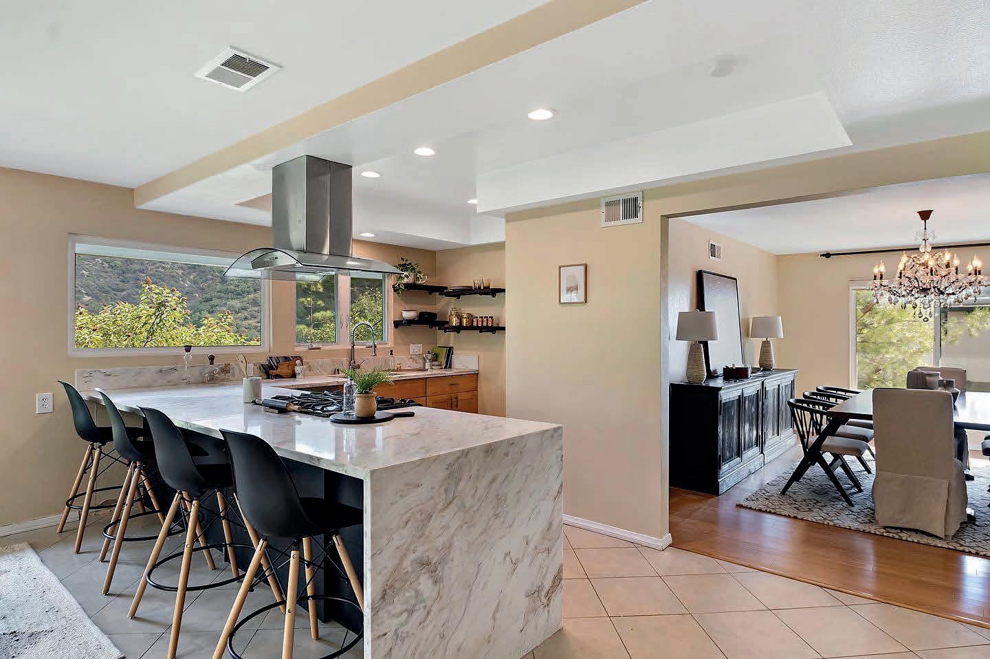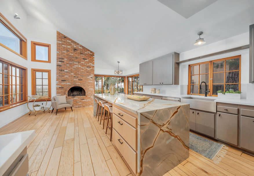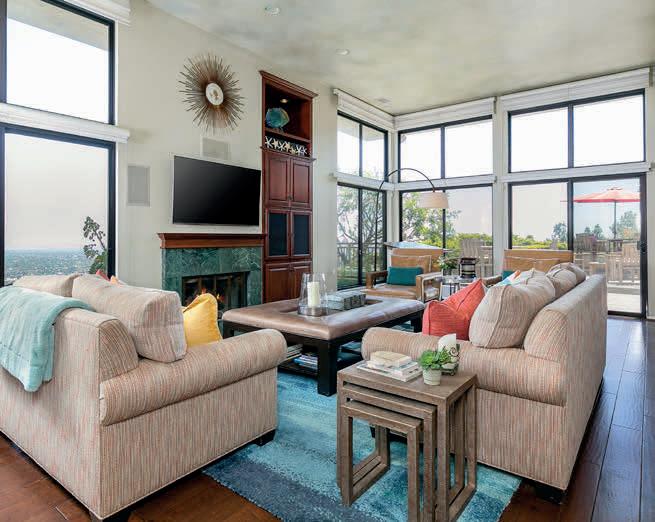 Welcome to “The Ridge” with breathtaking views from almost every room of this spectacular splitlevel home. With over 4,000 sq ft of modern yet warm design, it is beautifully situated high on a ridge overlooking the Rose Bowl and the San Gabriel Valley with views reaching to Catalina Island on a clear day. Fireworks on the 4th of July from the Rose Bowl are a Star-Spangled Spectacle. The grand entrance with outdoor fountain greets your guests to the breathtaking beauty beyond the new front doors. When you enter the primary suite situated on the upper most level, you’ll think you are in a 5-star hotel complete with fireplace, sitting area, balcony and attached bath with every amenity you could ask for and, yes... the views!