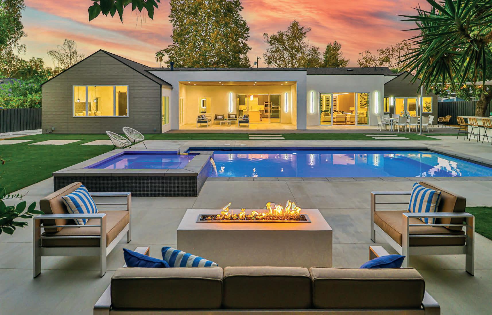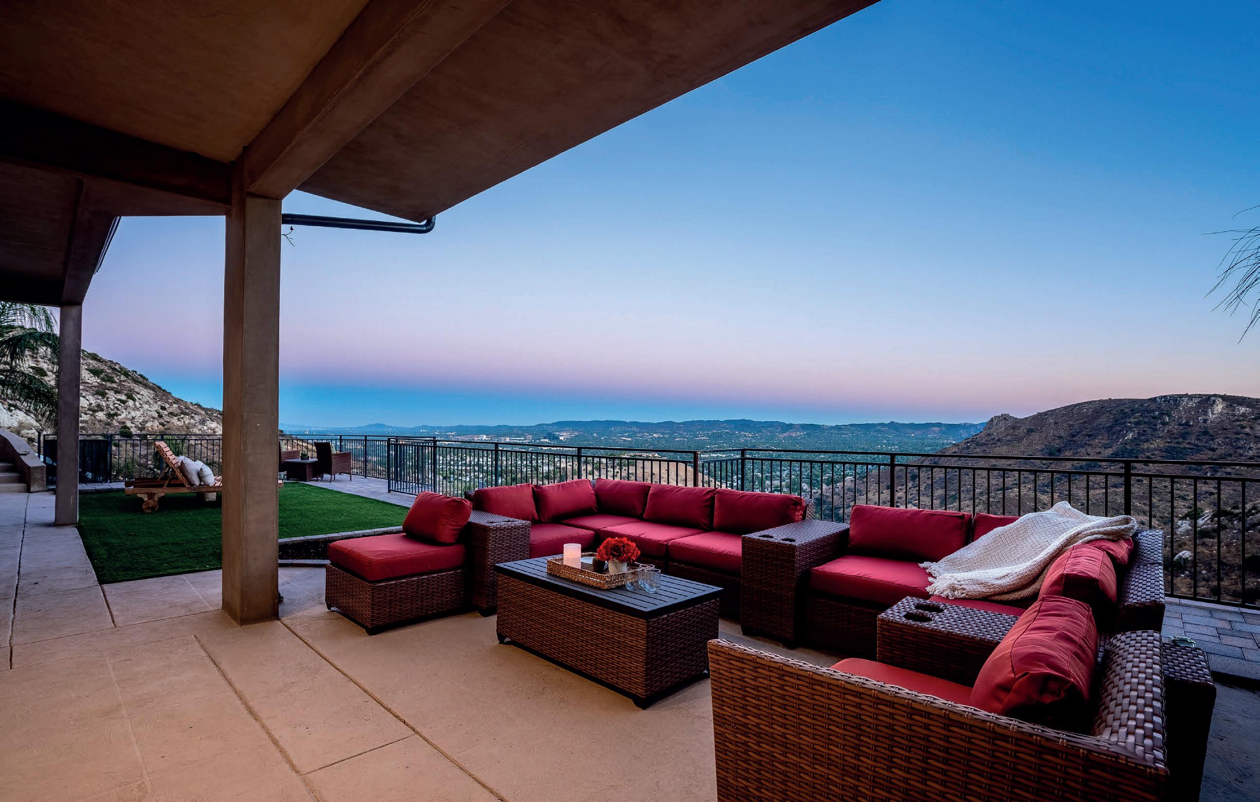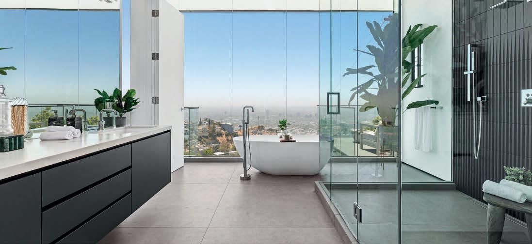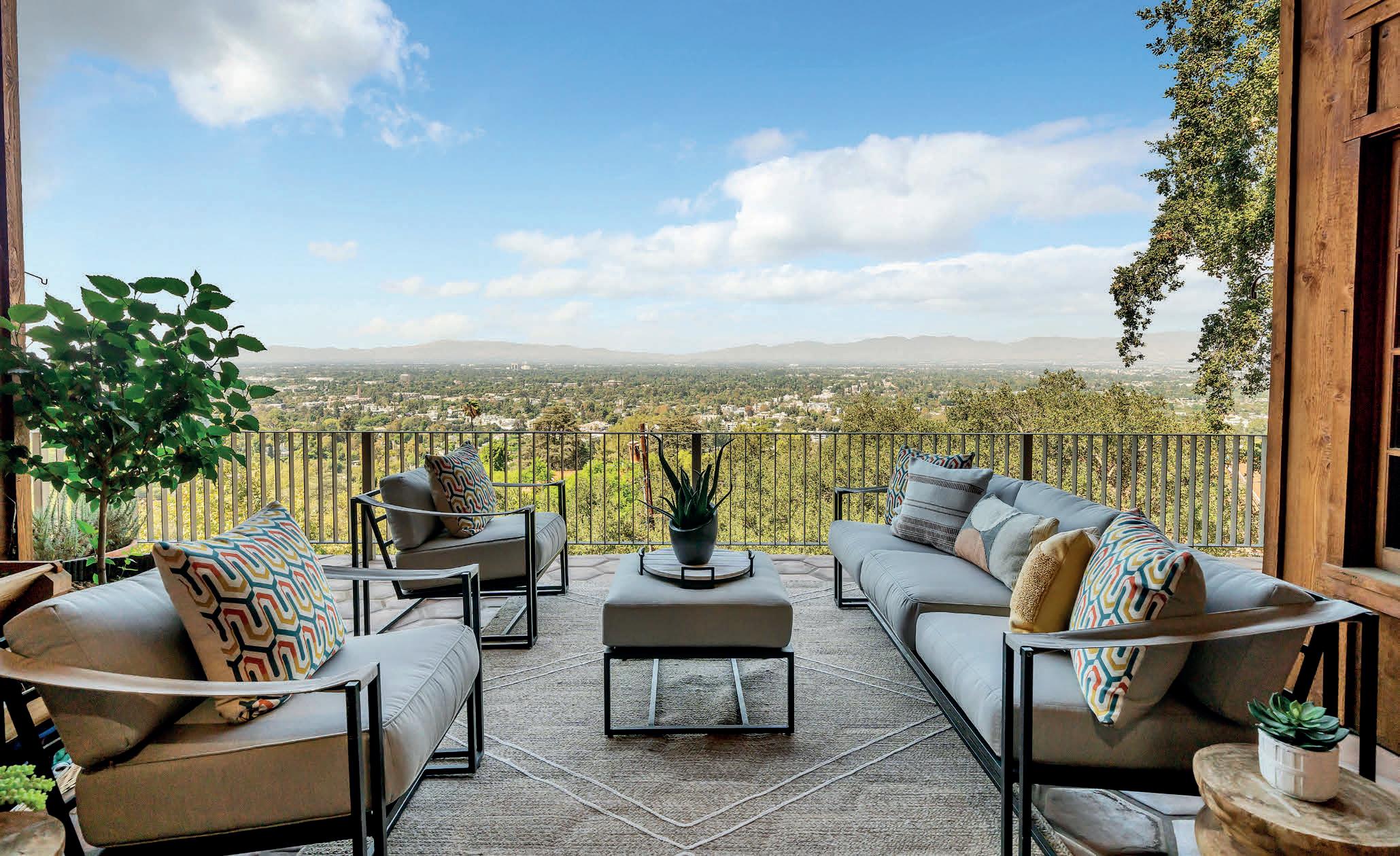Welcome to “The Ridge” with breathtaking views from almost every room of this spectacular splitlevel home. With over 4,000 sq ft of modern yet warm design, it is beautifully situated high on a ridge overlooking the Rose Bowl and the San Gabriel Valley with views reaching to Catalina Island on a clear day. Fireworks on the 4th of July from the Rose Bowl are a Star-Spangled Spectacle. The grand entrance with outdoor fountain greets your guests to the breathtaking beauty beyond the new front doors. When you enter the primary suite situated on the upper most level, you’ll think you are in a 5-star hotel complete with fireplace, sitting area, balcony and attached bath with every amenity you could ask for and, yes... the views!