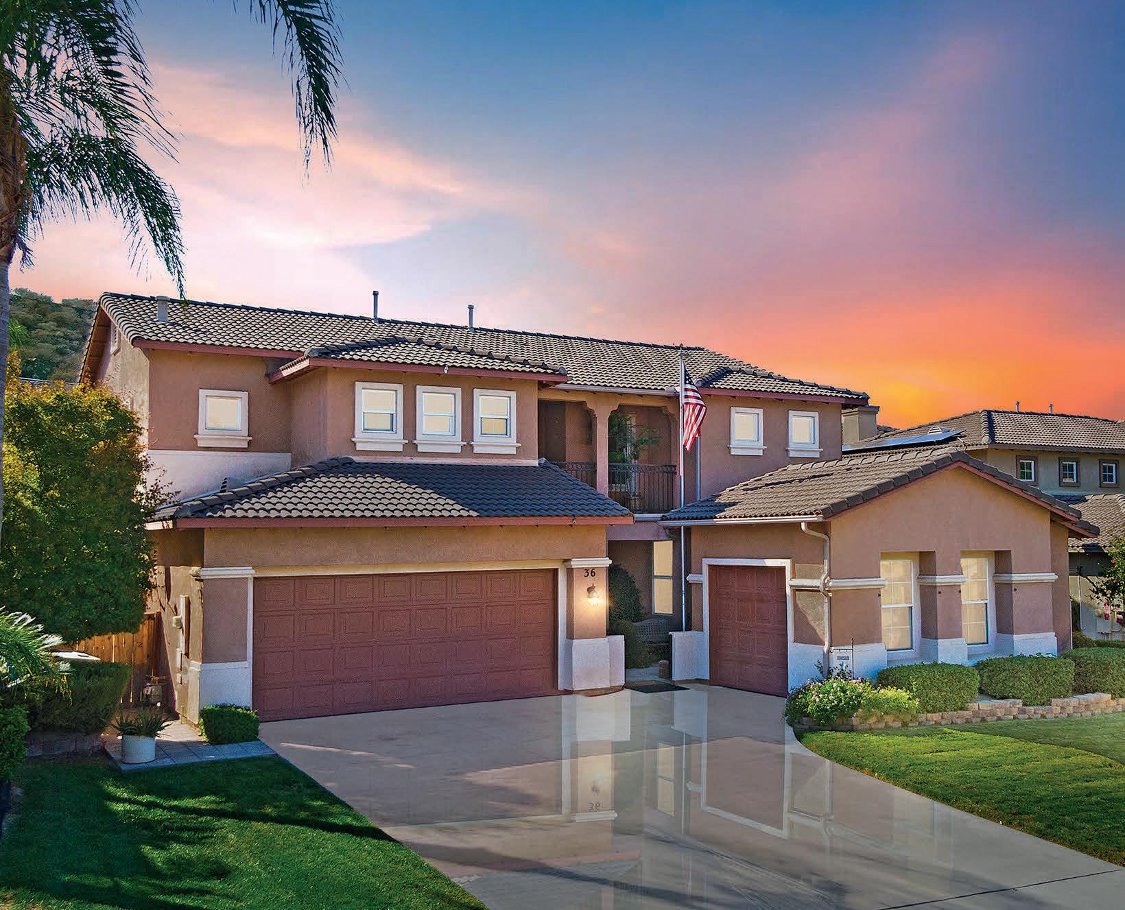 REDUCED! MOTIVATED SELLERS!! SEE THE DIFFERENCE-Quality Upgrades throughout! Rare opportunity at this price for a move-in ready home that is located in a quiet setting-no neighbors behind! 4 BD PLUS OFFICE/BATH DOWN! GATED PRIVATE ENTRY with covered COURTYARD & FULLY LANDSCAPED YARD to enjoy your mornings and peaceful views, work remotely or play outdoor games and enjoy barbecues. POOL SIZED YARD with auto sprinklers for lush florals of white jasmine, red bougainvillea and orange trumpet bush! Home throughout shows off freshly painted walls with contrast detailing, solar-tinted dual-pane windows, upgraded window treatments, interior SHUTTERS, gorgeous cool TILE FLOORS, light colored tile counters, classic maple finished cabinets & added COOLING ceiling fans with lights. The versatile floor plan has FORMAL HOSTING DINING ROOM that opens to the FAMILY room with cozy gas log FIREPLACE. EXPANSIVE KITCHEN that has all the space for chef with abundance of cabinets & counter space, large KITCHEN ISLAND with counter seating, spacious WALK-IN PANTRY & BRAND-NEW DISHWASHER. Upstairs has a study area and laundry room with sink. Bedrooms have WALK-IN CLOSETS and includes Closet World BUILT-INS to melt away all your needed items! One bedroom has a private balcony with view! 3-Car Garage. Close to LAKE ELSINORE HARBOR, 2 GOLF Courses & minor league Softball Stadium! Fine dining & shopping at Historic downtown, Dos Lagos & Promenade while Wine Country close. Easy access for commuters!