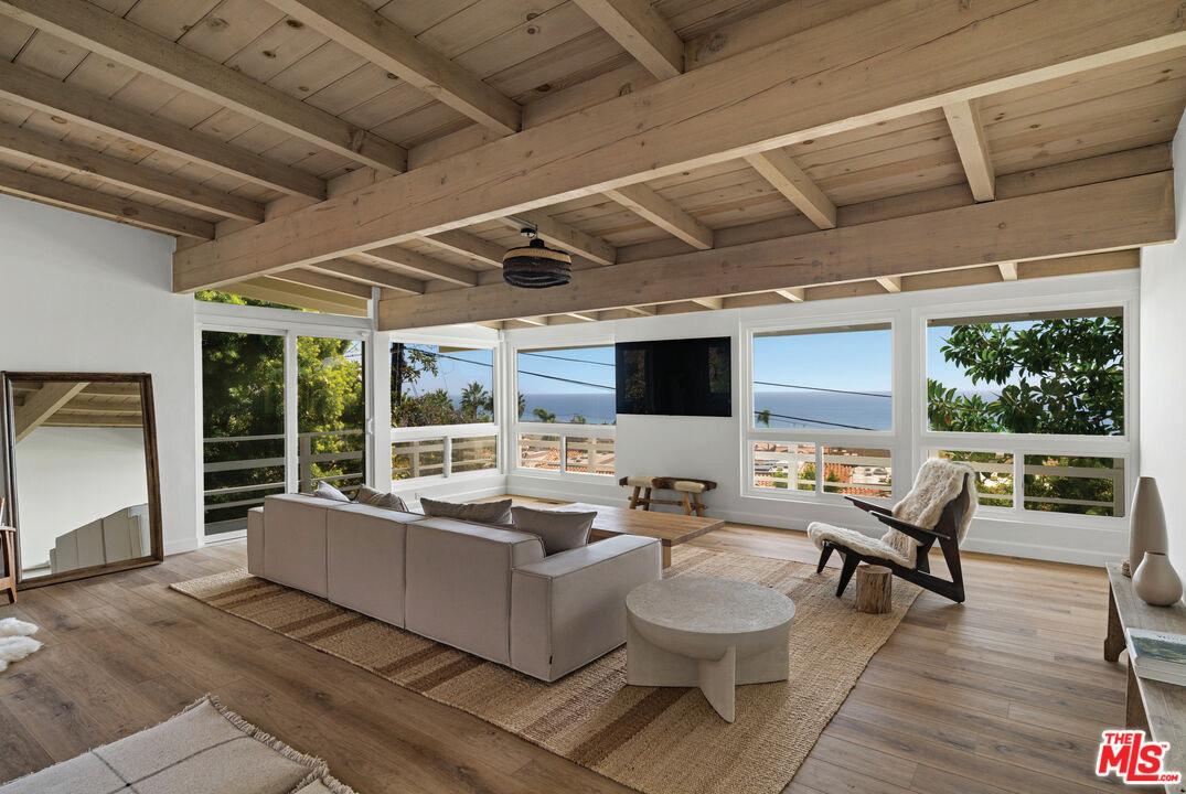 This spectacularresidence, newly builtwith no expense spared, showcases an extraordinary architectural design and stunning finishes. Sited on a private drive offSunsetPlaza ofonly 4 homes, offers seclusion and privacy. Soaring ceilings and walls ofglass lookoutto breathtaking panoramic downtown and ocean views. The main entry level is a showstopperwith an expansive greatroom featuring floorto ceiling Fleetwood doors opening to a beautiful outdoor deck, infinity pool and spa overlooking the city vistas.