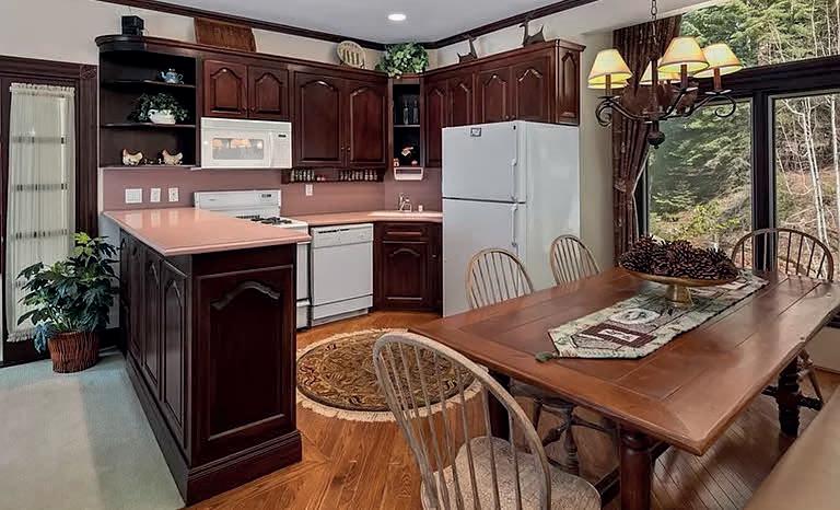 Stackable laundry sits on the main level. Upstairs has a full bath with deep tub, Italian porcelain tile, two bedrooms with vaulted ceilings, remote controlled ceiling fans and knotty Alder wood doors and Alder wood molding. The bottom level has the additional third bedroom and half bath with an additional, private deck and this floor is accessible both from the interior and by separate, exterior entrance. New exterior paint, wood-grained cement-fiber exterior siding, tankless water heater, upgraded plumbing and wiring, forced air central heating, generous, elevated platform storage in the build-up, and an additional sub-basement. Concrete parking for 3 vehicles and stone stairs lead to front entrance with weather- protected wood storage crib. 300 square feet of Trex decking and railings with metal spindles. Paved, maintained, plowed road and full conventional utilities, including gas. This turnkey home features a seasonal creek running beside the house and across 2 of the 5 lots. Close to Snow Valley Ski Resort, hiking trails, and fishing make this move-in-ready mountain getaway a true gem.