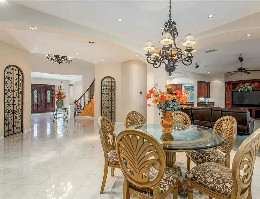 Welcome to this immaculately built estate sitting on .95 acres. This ultra private and custom Mediterranean home was built in 2004 with a total of 5,686 sq ft of unparalleled luxury. Walk through the front entrance to double wooden doors to a stunning grand dual staircase and tubular skylights. With intricate detailing throughout this estate featuring 6 bedrooms, 5 bathrooms, multiple beautiful living spaces, a formal dining room, marble, tile and carpet flooring. This home features a dual automated gated circular driveway with an attached three car garage and a detached four car garage with its own private bathroom. Bring your car collection. Each bedroom has its own balcony to enjoy the view from any angle. Once you walk into the kitchen you will notice the beautiful dark cherry oak cabinets with black kitchen aid appliances, builtin fridge, double convection ovens, 2 sinks with one in the island, pull out drawers, granite counter tops and a