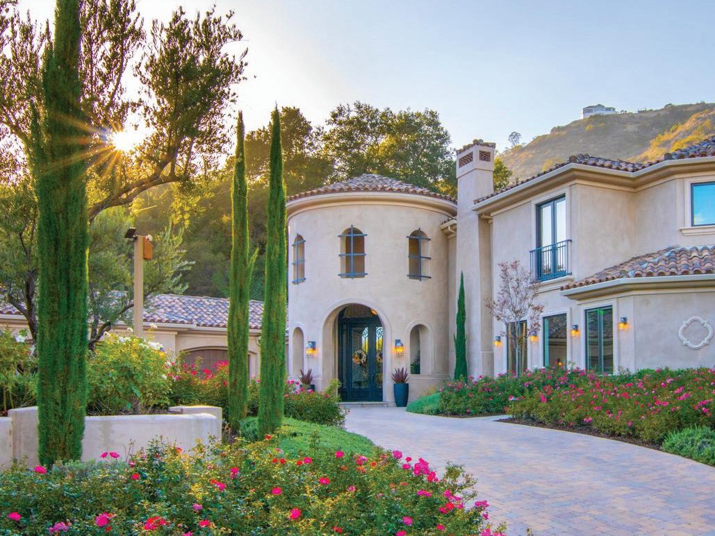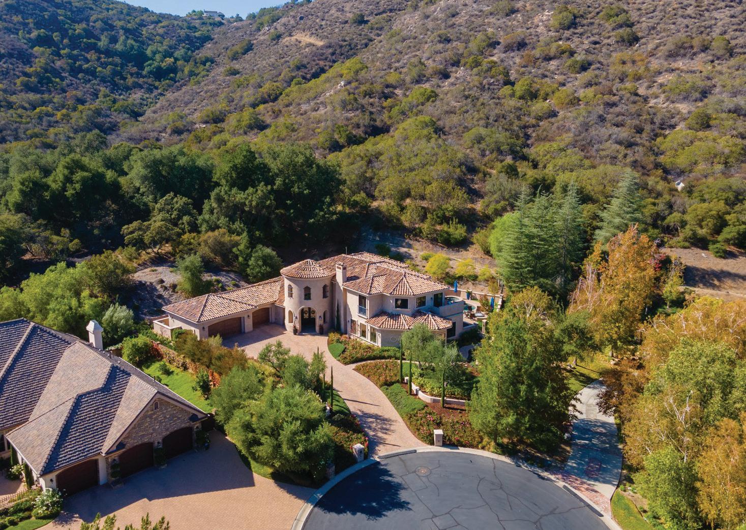 Boasting spectacular unobstructed panoramic views, the Leonis Estate is a unique and desirably located property within Country Ridge Estates, an exclusive gated community of just nine homesites nestled amongst the unspoiled Santa Monica Mountains. Ideal for optimal indoor-outdoor California living, this sprawling property of approximately six acres features a nearly 7,000 square foot custom-built contemporary Spanish home, and is sited atop an idyllic hillside once belonging to a seminary. Designed with harmonious fusion of luxury and nature, and retaining its historic divine feel, this sleek open-concept home provides a boundless, light-filled floor plan with a grand entrance, striking crystal chandelier, spiral staircase, and soaring ceilings. Enjoy the tranquil, manicured grounds and the outdoor built-in BBQ after a refreshing dip in the zeroedge pool and spa. The four-car garage provides ample storage space for cars, trucks, and all the fun toys life has to offer. This rare countryside retreat is just minutes to shopping, dining, top-rated public schools, private schools, the Ventura freeway, and the Malibu coastline. Meticulously crafted with elegance and grace, this sophisticated estate exemplifies the quintessential California lifestyle.