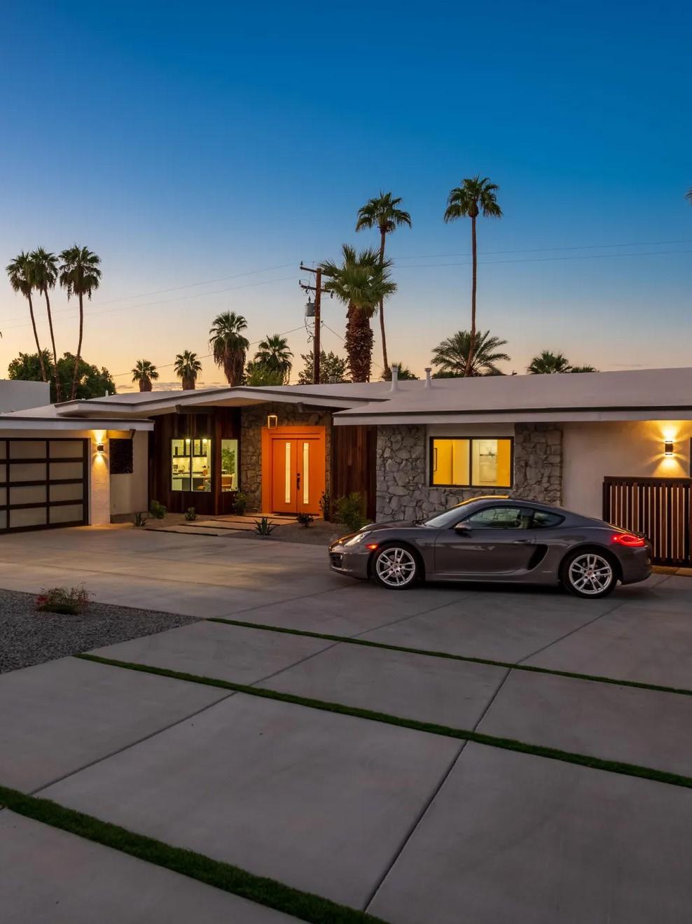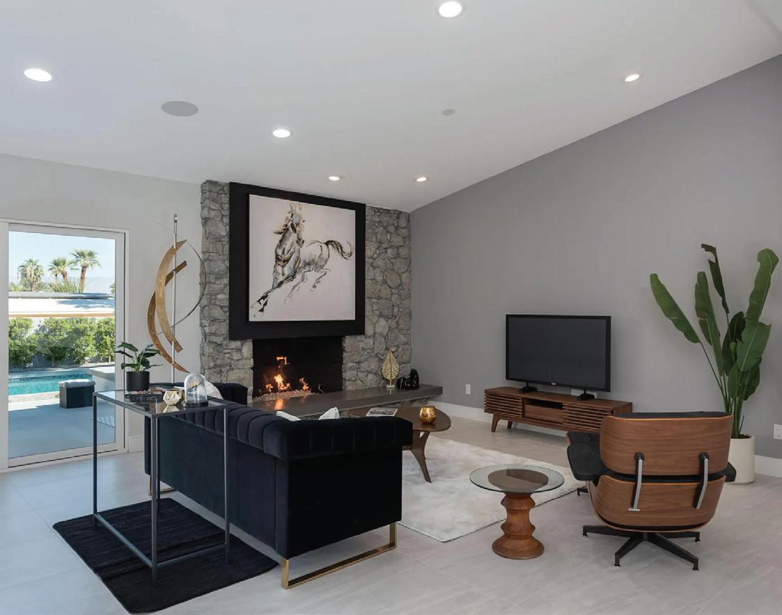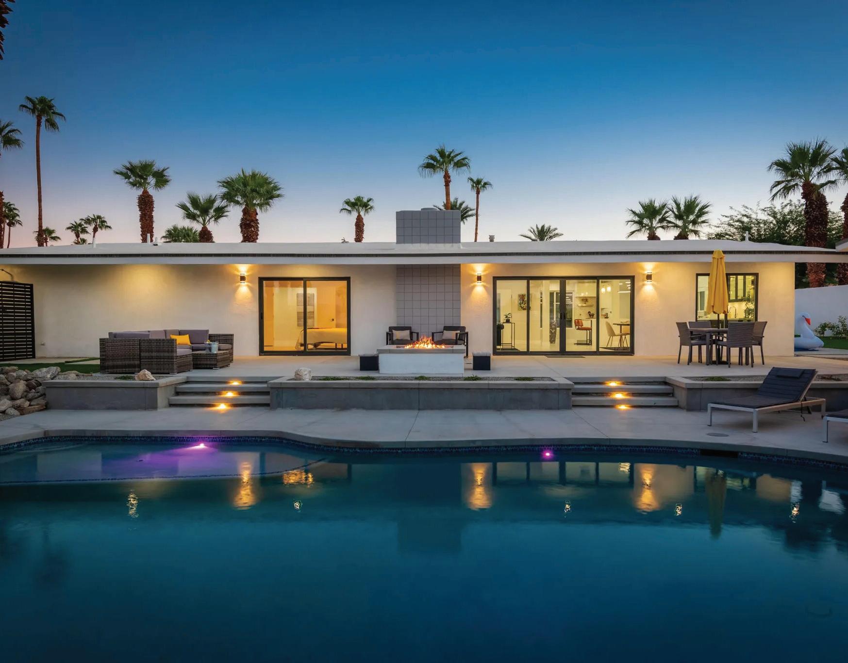 Holy Cow! A one of a kind, drop dead gorgeous, contemporary remodeled mid-century home in the heart of South Palm Desert, just minutes to El Paseo shopping & dining. You must see the video.! Designed in 1962 by renowned architect Charles Du Bois who designed many homes in the desert for many developers such as J.C. Dunas, Roy Fey, and the Alexander’s, as well as homes for many celebrities in Los Angeles. This ravishing home is infused with a desert modern concept; charismatic with cool and hip accents. A brand new Guest House with a full kitchen awaits your guests or potential passive rental income. Outstanding location, once known as the Purple Hills Estates, on a very quiet street. The living room boasts high ceilings with lustrous tile floors enhanced by a stone fireplace with a beautiful quartz hearth. An impressive new kitchen with high gloss white designer cabinets enhanced with a rich quartz countertop, waterfall edge and an exquisite backsplash. All new, high end appliances with an Induction Cooktop island create an efficient gourmet kitchen for the chefs at heart! A custom beverage bar complete with a wine cooler, ice maker & mini fridge for entertaining your wonderful guests. Bathrooms are appointed with high gloss floating cabinets, quartz countertop & chrome accents. Remodeled pool with a tanning ledge & spa. New foam roof, stucco, drywall, high grade thermally treated poplar wood accent & low E windows & sliders. You must come and see the beautiful workmanship.