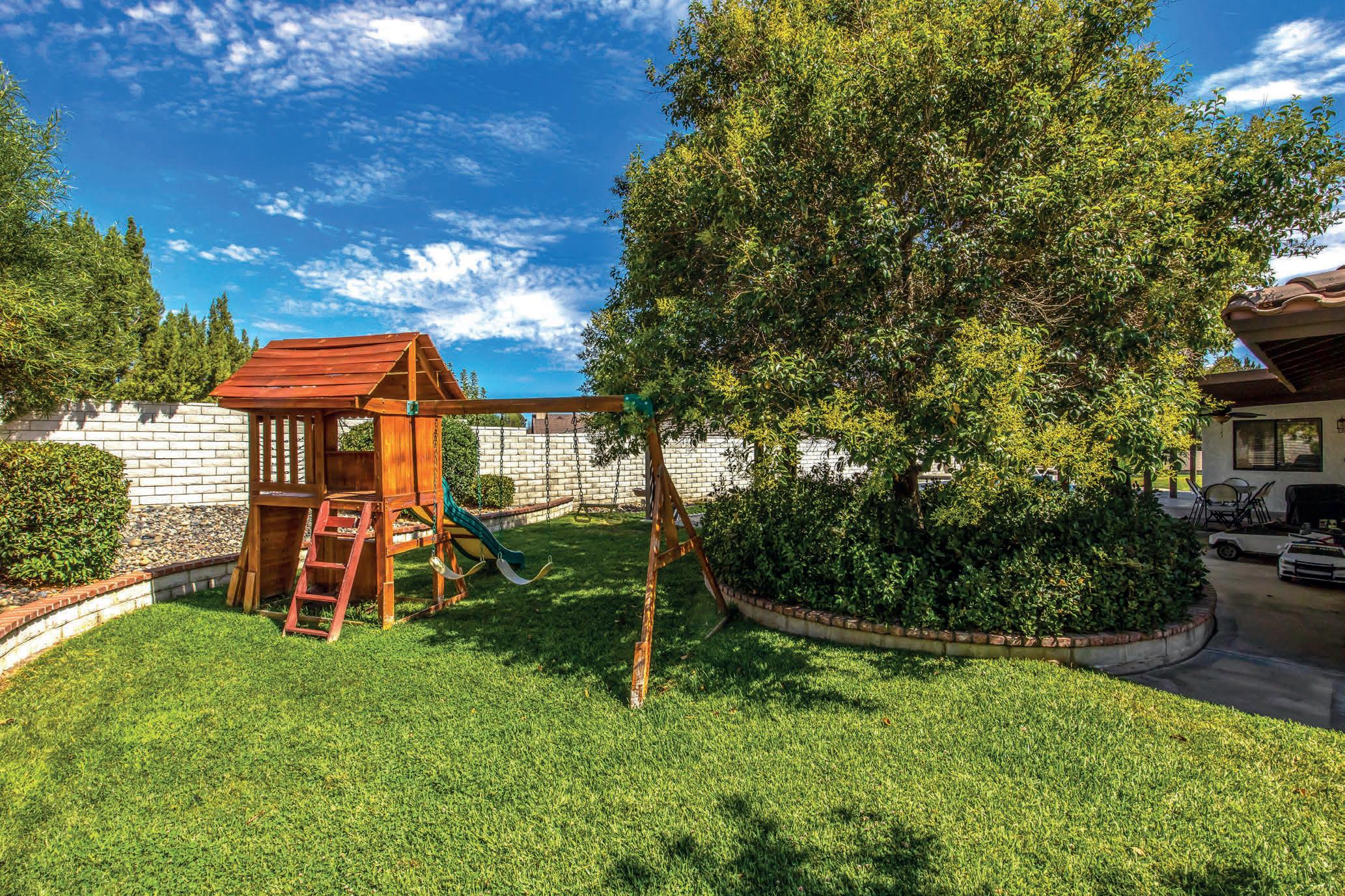 Absolutely stunning home in Sterling Ridge! As you enter the home, you notice the high ceilings with exposed wood beams, ceiling fans and the fireplace with stone surround. The great room is vast with hand scraped wood flooring, recessed lighting, and several sliding glass doors granting access to the backyard. The chef’s kitchen is gorgeous with quartz counters, large center island with breakfast bar, coffee area, soft close drawers and cabinets with glass accents. The stainless appliances include a gourmet stove and under counter microwave. The hall leads to the walk-in pantry and laundry room. The main level offers an office with glass French doors and 3 bedrooms and 3 bathrooms, including the expansive primary suite with walk-in closet, private patio and a primary bathroom that exudes relaxing spa vibes. Upstairs is an additional primary suite that could be a guest area or bonus room with a fireplace, walk-in closet, soaking tub and separate shower. The backyard is spectacular with panoramic views, pool with waterfall, and plenty of areas to entertain. There is a large Koi pond with UV filter, 2 waterfalls, and a bridge leading to a charming gazebo. The irrigation system has recently been updated and the grass area re-seeded. The abundant orchard is comprised of pomegranate, plum, apple, asian pear, apricot, cherry, jujube and mulberry trees. Energy efficient features include LED lighting, Low E windows, tankless water heater and a new owned solar system with whole house generator system! RV parking with water and power!