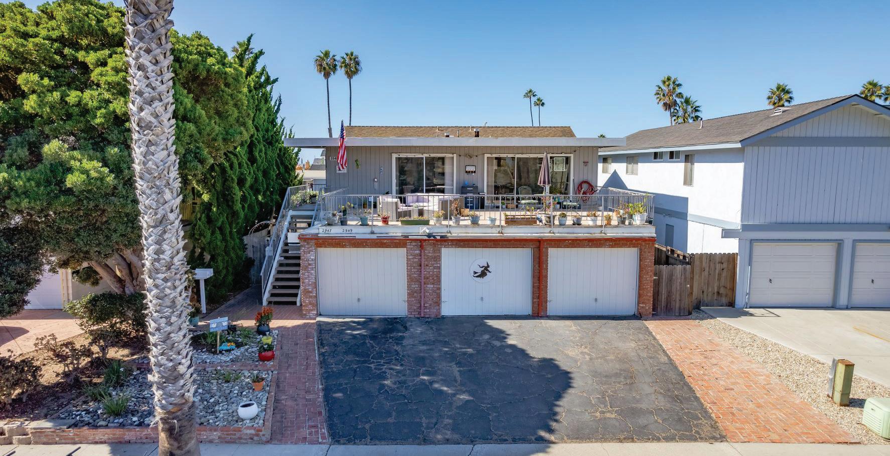 This extremely rare masterwork 1/2 block from the beach includes: Living and dining rooms, updated kitchen, upstairs master bedroom and sunroom, rooftop patio deck, additional downstairs bedroom, 2 baths, adjoining living and dining room patio, parking for 2 cars, garage storage, original artisan tiles surrounding the fireplace, original built-in cabinets, and skylights. Ownership at the complex also includes a 1/4 shared interest in two rental units at the rear of the property as well as a separate single family residence. Significant Mills Act Tax Benefits will transfer to the new owner.