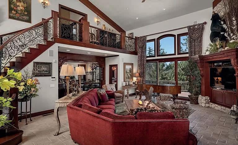 Arrowhead home on 6.34 acres featuring 6 bedrooms and 7.5 baths. Unique custom carved wood, coupled with special stone work, and professionally furnished in its 9,247 sq.ft. living space. The grand living room has high ceiling, rock fireplace, big windows bringing the forest in. Library, chef’s kitchen, breakfast round table, formal dining room, the spa room with sauna are on the main floor. Outdoor BBQ, pond, fire pit and 4-car garage. With 2 horse stables, you can transform this place to be your dream equestrian property, a vacation home or a corporate retreat. The lower meadow is perfect for outdoor adventures such as riding, hiking, and mountain biking in