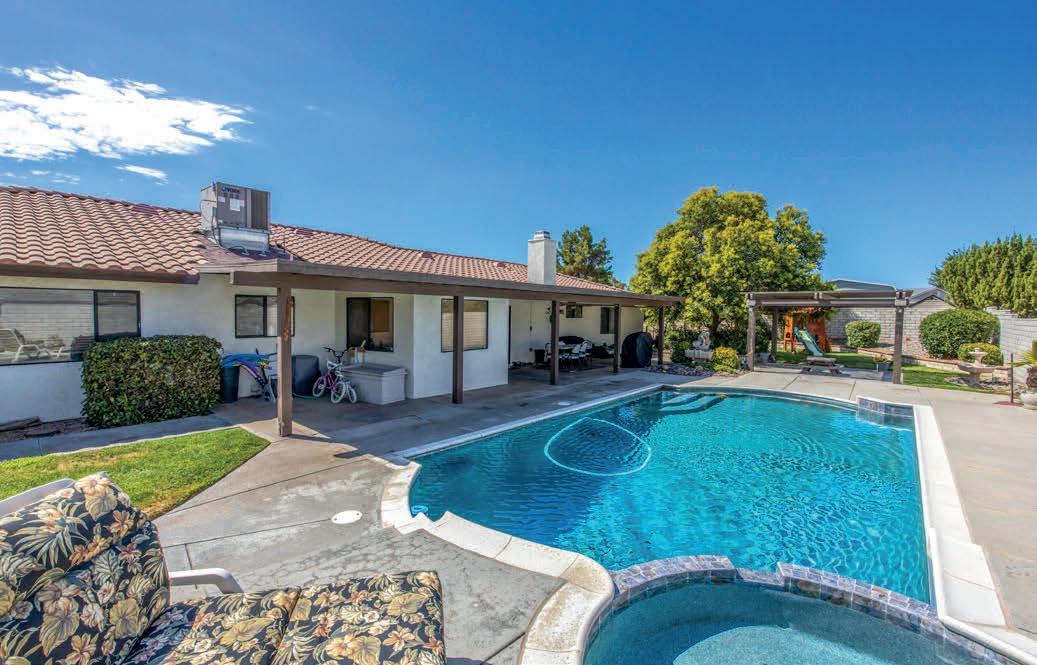 The home comes complete with a 2 Car Attached Garage, as well as a detached air-conditioned work shop/storage shed in the backyard. This home was remodeled and upgraded within the past two years, including but not limited to whole-house replumb, energy efficient vinyl windows, recessed lighting and new electrical throughout, upgraded master bathroom, resurfaced original hardwood flooring throughout, granite counter tops, moldings, paint (interior and exterior), and landscaping. New features include a master bath vanity, new water heater, pool pump, pool plumbing, new cement patio area and solar panels.