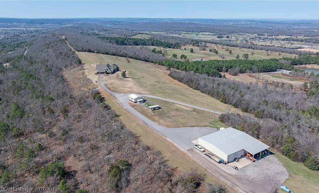 2310 Red Brown Place, Greenwood AR is now being offered with 77 +/- acres! New price! This elegant wilderness sanctuary is meticulously maintained, and provides a private-retreat atmosphere. You will understand how unique and special this property is as you travel the drive. Home offers 4,816 sq ft/ 4 spacious bedrooms, 2 full and 2 half baths, and an additional half bath. Don't miss the lodge-like bunks for the kids! The kitchen is a chef's delight: Large island with prep sink, French Door Refrigerator, Double Ovens w/ Convection. Warming drawer and instant hot water. The Primary Bedroom and Bath is spacious, flooded with beautiful light and patio exit. Custom features in the bath include a rain shower with jets and a hidden TV in the mirror. You will love the cutting-edge features, including geothermal heat/air and Marathon water heaters. New roof installed in 2020. Gorgeous natural light streams through the new windows added to specific areas in 2022. The main living area has been beautifully updated in 2020, new flooring throughout the entryway, living, dining room, hall, kitchen, and breakfast area. Experience the luxury of custom details, from barrel ceilings to extensive crown molding. The "Archers Delight" Room is warm with wood features, including custom cabinetry, hickory floors, surround sound, and a fireplace. Let's look beyond the residence! A 70x80 shop featuring 6 insulated powered overhead doors, 25x40 covered parking area in the rear provides ample space for additional equipment, and Professional Kennels. The list of details is impressive and extensive. Ask your Realtor today to see all supplements attached to this property. Private Showings can be scheduled at this time by appointment only. Located in the Award Winning Greenwood School District!