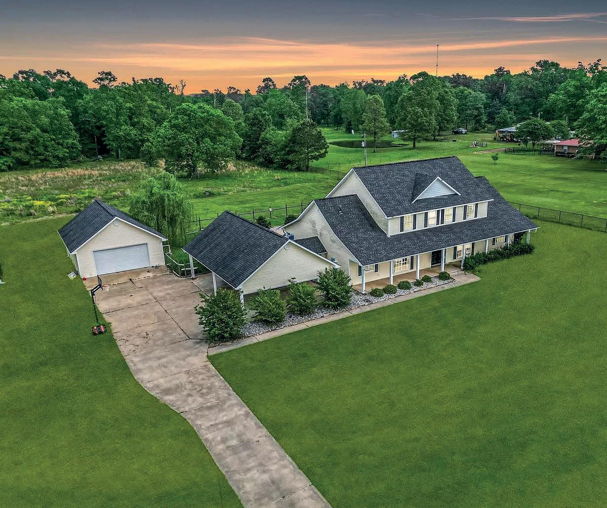 4 BEDS • 3 BATHS • 3,409 SQFT • $995,000 Escape the hustle and bustle to lush 48 acres of farmland living that offers a 6-stall barn, pond, dog kennels, 200 ft equipment shed, pool, generator, studio apartment and so much more! Enter the front door through the foyer with an open staircase and chandelier. Cozy up in the family room with a stone fireplace, beautiful wood flooring, and windows overlooking the front porch and sunroom. The kitchen offers a large island, double ovens, custom cabinets and access to your laundry/mudroom that leads directly to the backyard and pool area. Enjoy a large master suite with wood burning fireplace and sitting area, his and her closets and private bath. Upstairs provides 3 large bedrooms, Jack-n-Jill bath and walk-in attic access with ample storage. Outside you’ll find an oversized front porch and swing, 4 car carport, the studio apartment with a full bathroom that opens to the covered back patio, grilling area and pool. This gated estate with green fields and picturesque surroundings is a must see to discover all there is to offer!