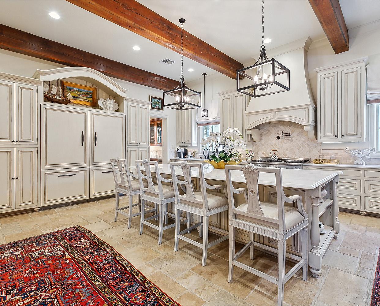 Large foyer with custom iron curved staircase, formal living room, formal dining room, wine room/gentleman’s library or study with climate control steel and glass wine storage unit, stunning long gallery/hall with exposed natural beams, breakfast area, and den/keeping room. Large kitchen with custom finishes, butler’s pantry and top of the line appliances. A unique side sunroom welcomes guests off the porte cochere, office and maildrop area off sunroom, full workout/gym area above garage with full bath and steam shower. Huge master suite with floor to ceiling marble in master bathroom and custom designed master closet. Second floor features two bedrooms and two full bathrooms with a childrens den (playroom) and study hall area. Some features include rift cut white oak flooring throughout, Bevelo gas lanterns, 3 tankless hot water heaters, exterior custom European style landscaping and lighting, 16 zoned irrigation system, Control 4 Smart Home Automation system, built in outdoor kitchen with custom brick pizza oven, heated pool and spa by Russell Pools with expansive bluestone patio and decking, large gas firepit area by pool, huge Loggia - living area and dining space, 3 gas fireplaces, mudroom offgarage with custom shelving, large three cargarage and whole home generator. It’s all in the details. Truly a once in a lifetime opportunity.