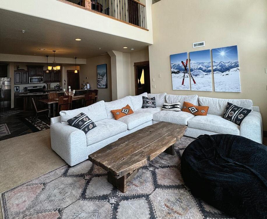 HUGE windows overlooking the mountains. This condo has a bunk room, several storage areas, 2 family rooms, gas fireplace, laundry room, large pantry, kitchen, and a large 2 car garage to store all your ski equipment. Forced Air Heating system and gas fireplace heat the space very efficiently. Includes 9 beds and comes furnished. HOA has clubhouse with gathering area, pool table a few exercise equipment and a sauna. Use the small elevator as a dumb waiter. The elevator is owned by HOA, shared expenses with other top unit. Agent is related to seller.