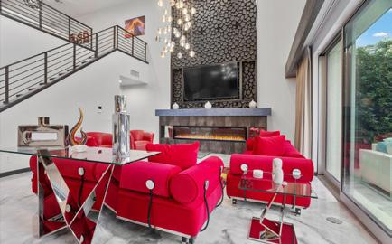 linear fireplaces.2 fully equipped bars w/ample seating, fully equipped gym.
