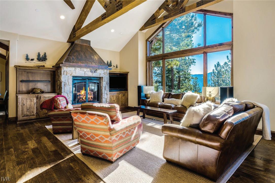 Custom home rebuilt in 2017 with panoramic lake views from every level. Coveted neighborhood, lower elevation home on cul de sac. Upper level great room with beamed ceilings, LED lighting, gourmet kitchen, glass wine wall storage, professional Viking appliances, walnut cabinetry, dining area leading to large deck. Mid-level master bedroom suite w/ floor to ceiling windows, huge walk-in closet, fireplace, bath with oversized shower & soaking tub. Family room w/ access to large deck and two additional en-suite guest bedrooms with deck access on mid-level plus laundry. Lower level guest quarters with large guest/bunk room, full bath and kitchen area, leading to terraced gardens, patios w/ fire pit and dining area on this street-to-street lot. Beautifully curated stone accent walls and fireplace surrounds, hydronic heat under large format porcelain tile flooring, extensive landscaping on drip irrigation, with stone wall terraces, dog run and level driveway for optimal winter maintenance. To view more of the listing just visit: TahoeIcon.com