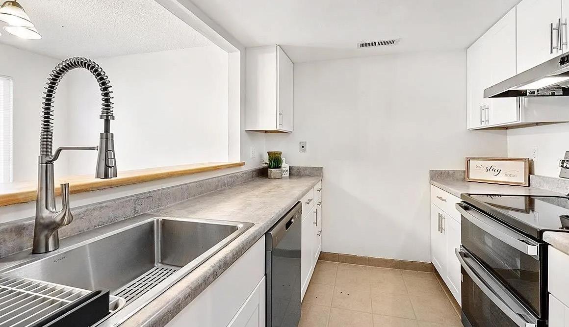 Welcome to your new home in the El Dorado Villas. This nicely updated twostory condo features two spacious bedrooms and 1.5 baths. The interior is freshly painted with new carpet and tile flooring. The kitchen has been remodeled with white cabinets, stainless appliances, countertops, and a stainless farm-style sink. The windows are double-paned with new window coverings. The condo also has a detached one-car garage and two fenced patios in front and back.