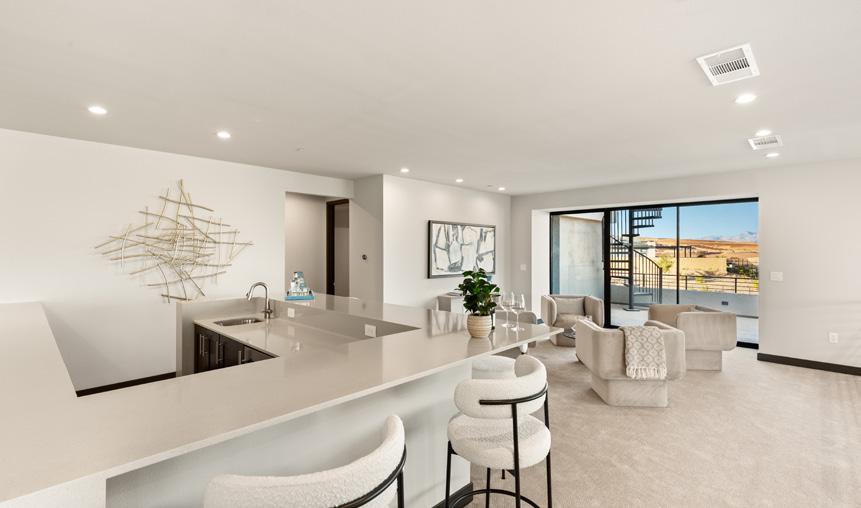 Introducing Blue Heron’s exclusive pre-designed custom home in the Nexus community of Lake Las Vegas boasting breathtaking lake & mountain views. First floor features 10-foot ceilings, 21-foot vaulted ceiling, in-ground outlets, & a floating staircase. The second floor offers an entertainment area with a wet bar & sky deck. Garage includes a 220v electric vehicle charger, a dedicated circuit for a freezer, & reinforced light fixture. Additionally, the home includes solar panel pre-plumbing, a Nest climate control system, & sound reduction insulation. Thermal break windows enhance energy efficiency, & structural upgrades allow for pocket doors, improving the open-concept design. Living area offers lake views & an upgraded fireplace. The backyard is preengineered for a pool. Enjoy Jack Nicklaus Golf Courses, a private beach, kayaking, the LLV Sports Club, social events, hiking, biking, & the full LLV lifestyle. NV is a State W/O Individual & Corporate Income Taxes offering big savings. 36 RAINBOW POINT PLACE, HENDERSON, NV 89011 6
