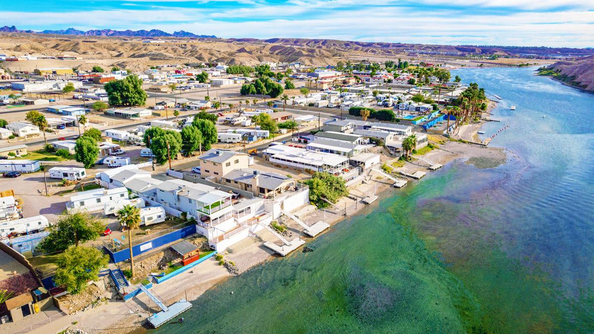 Be ready to fall in love. Looking for a fabulous river front lifestyle? This quality built home has such a classic and beautiful style as well as being elegant and spacious. You will be captivated by the open floor plan and large upgraded kitchen with loads of cabinets. Riverfront Living at an affordable price. Right away, you’ll feel at home in this single story, 3 bedroom (huge master bedroom) 2 bath riverfront home. Such a rare find on a LOT AND A 1/2 with a huge covered back patio for entertaining. Hard to find private beach in a no wake zone, as well as an inviting private and gated pool with new pool pump. Open and spacious with beautiful views and personal boat dock. The neighborhood launch ramp is a half block up the street! Central location for easy access to shopping, gas, restaurants and much more. Laughlin, NV is @ 20 minutes away. Three car garage and lots of additional parking.