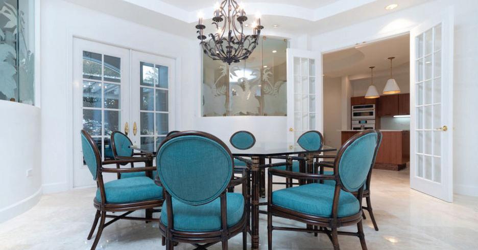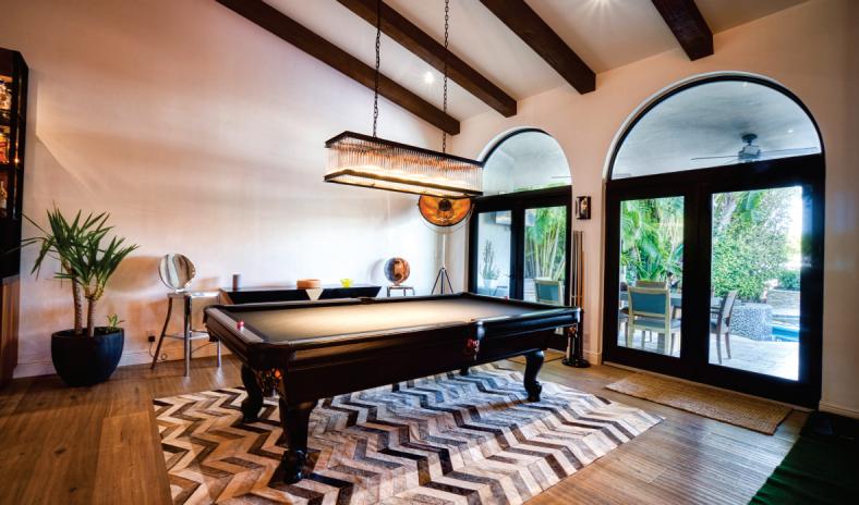 The immaculately maintained 3,880 sq ft home includes five baths, four bedrooms, with a semi-open floor plan in the family and living spaces that opens up to the saltwater heater pool with waterfall and terraces. Elegant and functionality describe this residence.