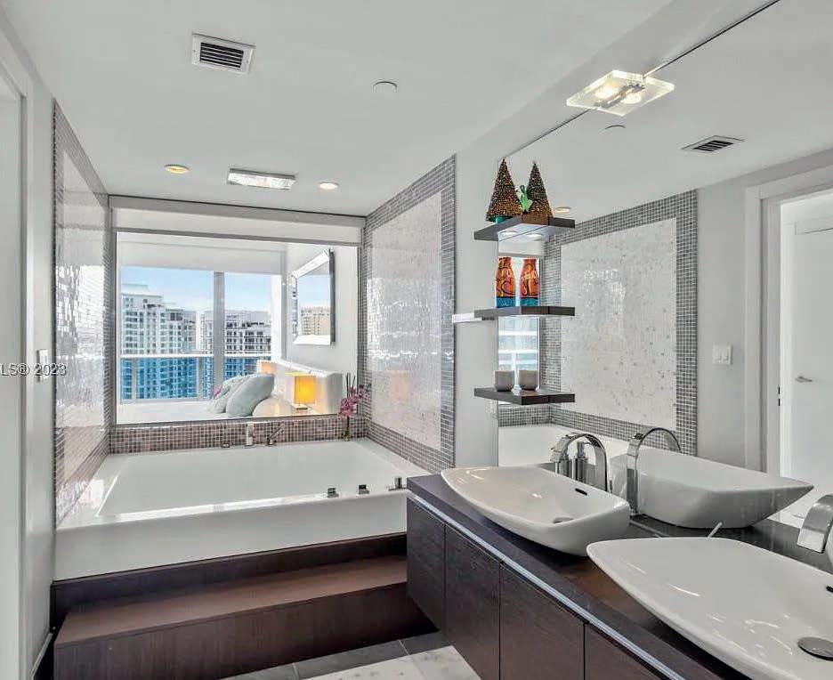 Experience sweeping waterfront views, impeccable design, and luxurious living at the exclusive Paramount Bay in Edgewater, Miami. Stunning two bedroom, two bathroom condo, on one of the highest floors in the building, offers unparalleled views of Biscayne Bay, Miami Beach, and beyond.