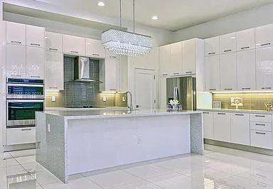 This exquisite home also features custom kitchen cabinets, boasting both style and functionality. The high ceilings create an open and spacious atmosphere, providing a sense of grandeur and airiness through out the home.