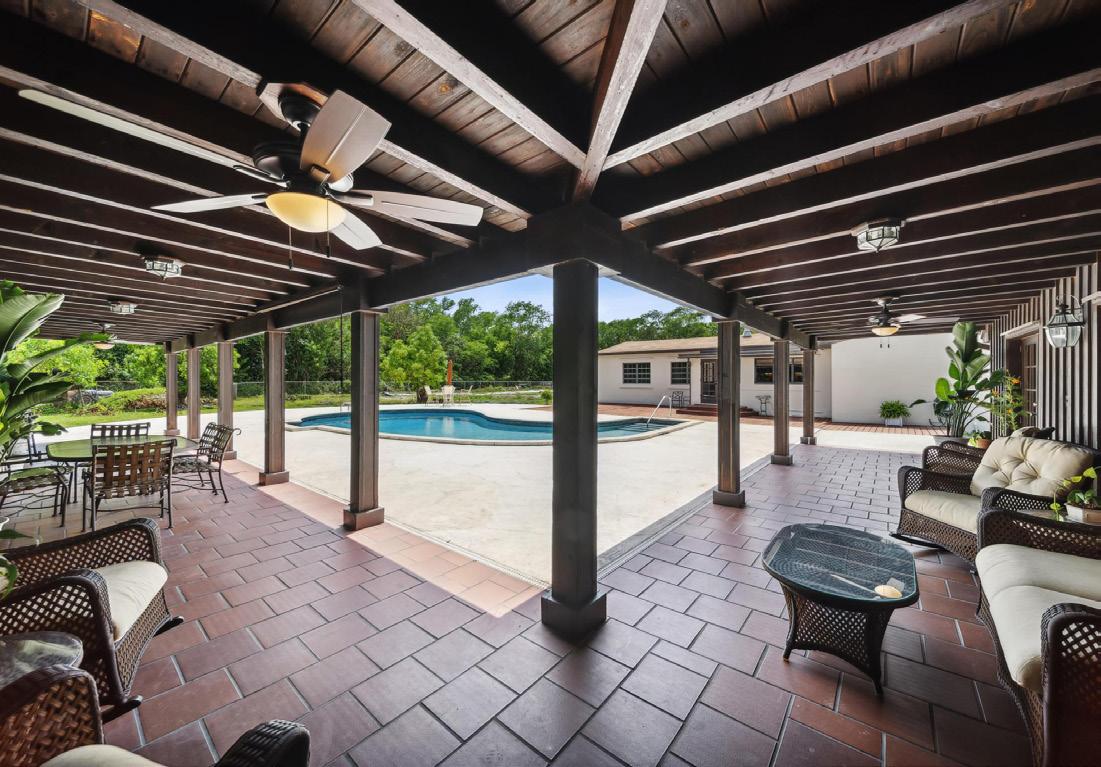 Elegant Miami Shore’s renovated estate home with a detached guest house on an oversized corner lot with gas generator. Seller financing available. This gem abounds with a breezy front porch, ceramic floors, a fireplace as well as impact windows. Lovely light-filled spacious rooms, a large eat-in kitchen with gas range, and an enormous main suite. The Florida room glass doors open to a relaxing pool and an expansive fenced backyard brimming with citrus, avocado and mango trees. Lots of parking with two gates and an EV car ready plug. Located adjacent to a cul-de-sac street, and offers a short distance to the bay, recreation center, tennis, golf, water park, local schools or shopping. Move-in ready! A Beautiful Miami Home. Make it Rein!