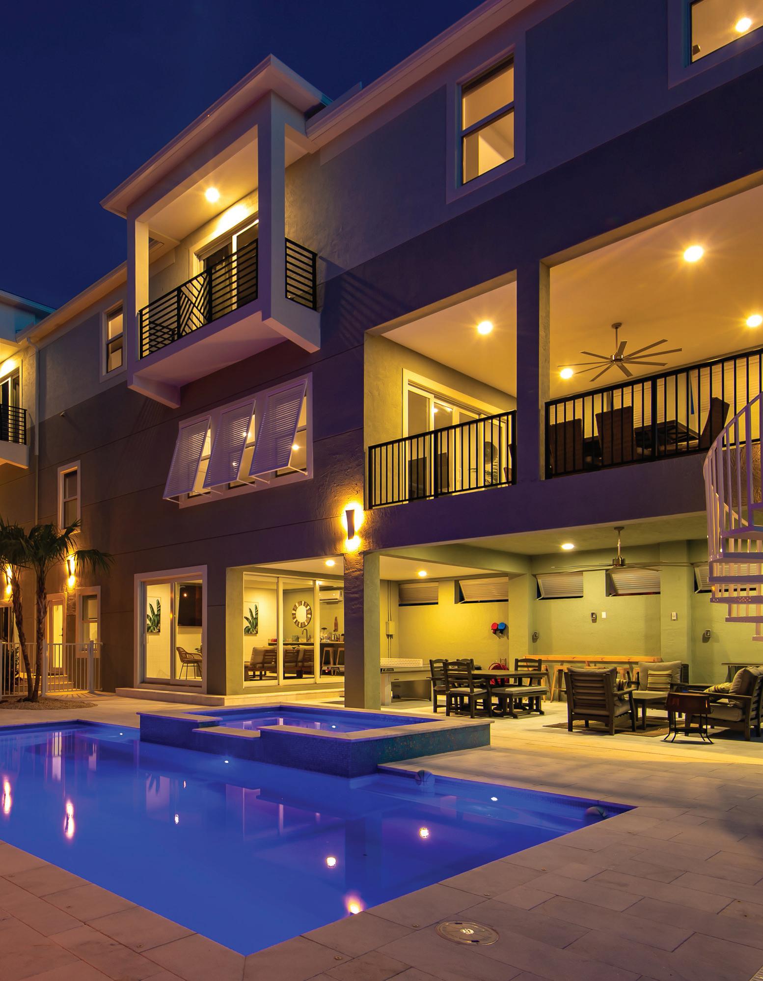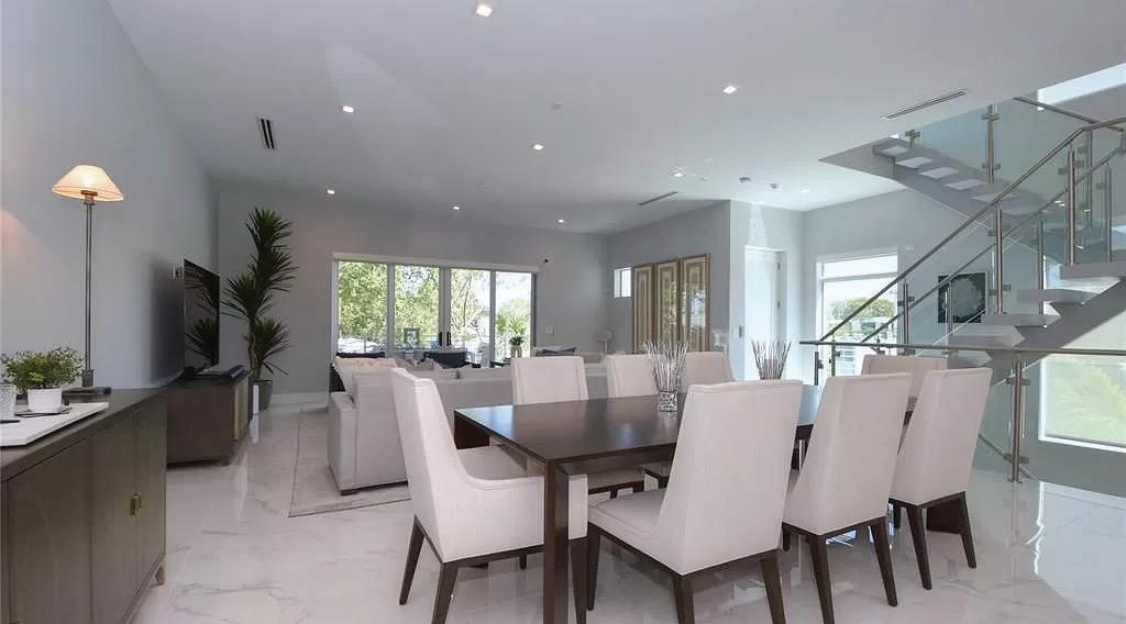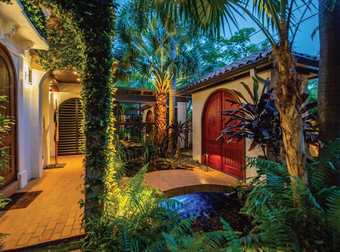 The main floor boasts a stunning living and dining area with 20 ft ceilings, offering expansive bay water views. The state-ofthe-art kitchen is a chef’s dream, featuring a unique Benihana cooking station, top-of-the-line appliances, and ample storage space. Enjoy the convenience of a large, easily accessible laundry room and two guest bedrooms with en-suite bathrooms.