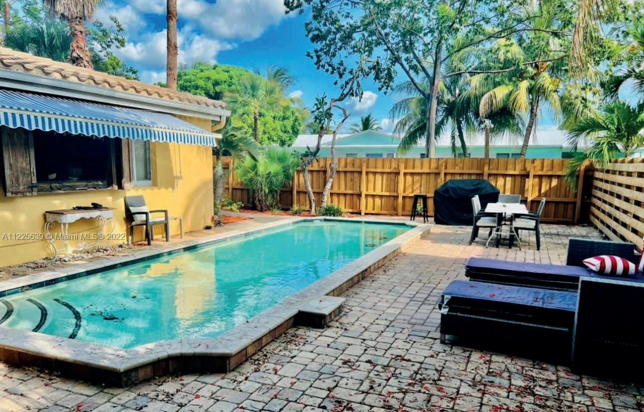 A special opportunity to live in the desirable South Gables on a tree-lined street within the Sunset Elementary school zone. Step through a charming, walled courtyard into this warm and completely renovated home. Wood-look porcelain floors, plantation shutters, fresh white paint, and neutral finishes, new roof, electrical, plumbing and septic tank. All impact windows and doors.
