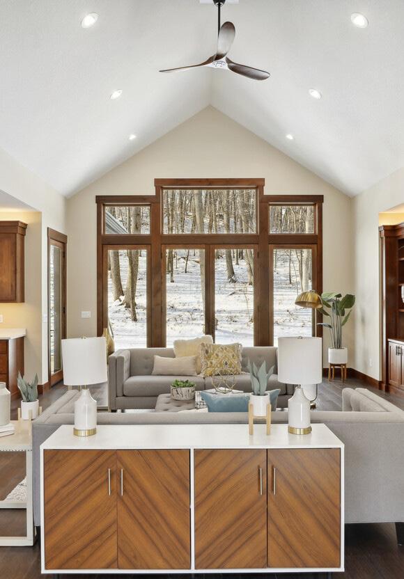 Beautifully remodeled, mid-century modern home with exquisite details throughout. Gourmet kitchen with oversized center island featuring a waterfall Carrara quartz countertop. Vaulted sunlit spaces with double-sided fireplaces on the main floor and lower level. Heated marble floors, walk-in shower and free-standing tub in the owner’s suite. Massive 3 car garage and driveway. Private backyard featuring pond views and shade from mature trees connects you to nature. Truly built for entertaining with wet bar and walk-out family room. All the must-haves: 4 bedrooms on one level, main floor laundry, pantry, mud room and screen porch. Close to parks and trails. You will find this property by Stone River Homes features the little things that mean so much with a careful selection of colors, materials and finishes that create an ambiance that is comforting and inviting.