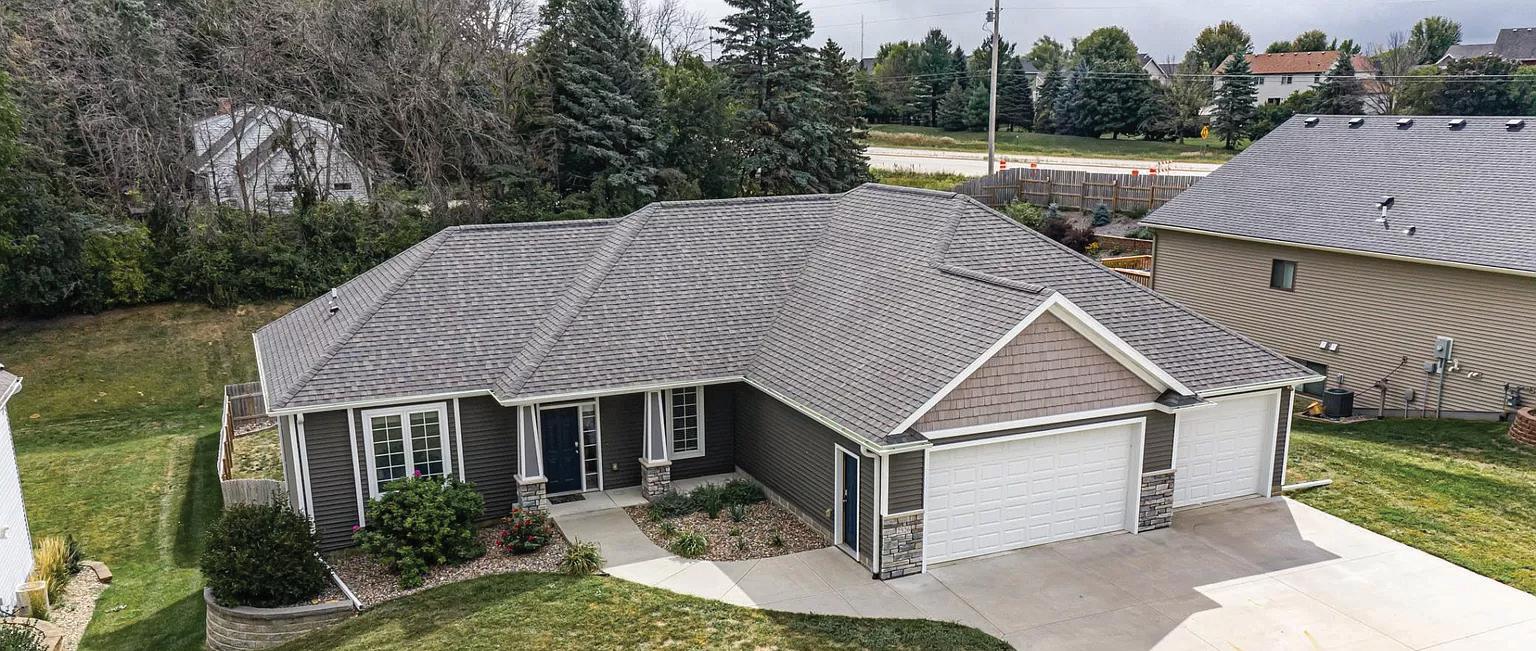 BRAND NEW construction Farmhouse style rambler in an established neighborhood! FULLY COMPLETE/READY NOW! 4.99% 2 for 1 rate buydown offered (limited time)! Expansive 1/3 acre+ level lot nestled on quiet cul-de-sac is an idyllic setting. Local, custom, award-winning builder. Hand designed & hand built. This main-level-living rambler is crafted to have functional features & standout quality throughout. LP SmartSide siding, Anderson Windows, custom cabinets, site-finished enameled trim with shiplap & wainscot, solid doors, quartz, Kohler, Moen, LVP floors, highefficiency HVAC & air exchanger. Open floorplan with everything on the main floor & is ADA-friendly! Box vaulted ceilings and large linear fireplace. Unique walk-through mudroom/main floor laundry into primary closet. Owner’s suite with curb-less shower and walk-in closet. MASSIVE oversized 3-stall garage with over 925 insulated sq ft and larger doors with windows. 440 sq ft of covered porch front and back. Easy, stair-free living!